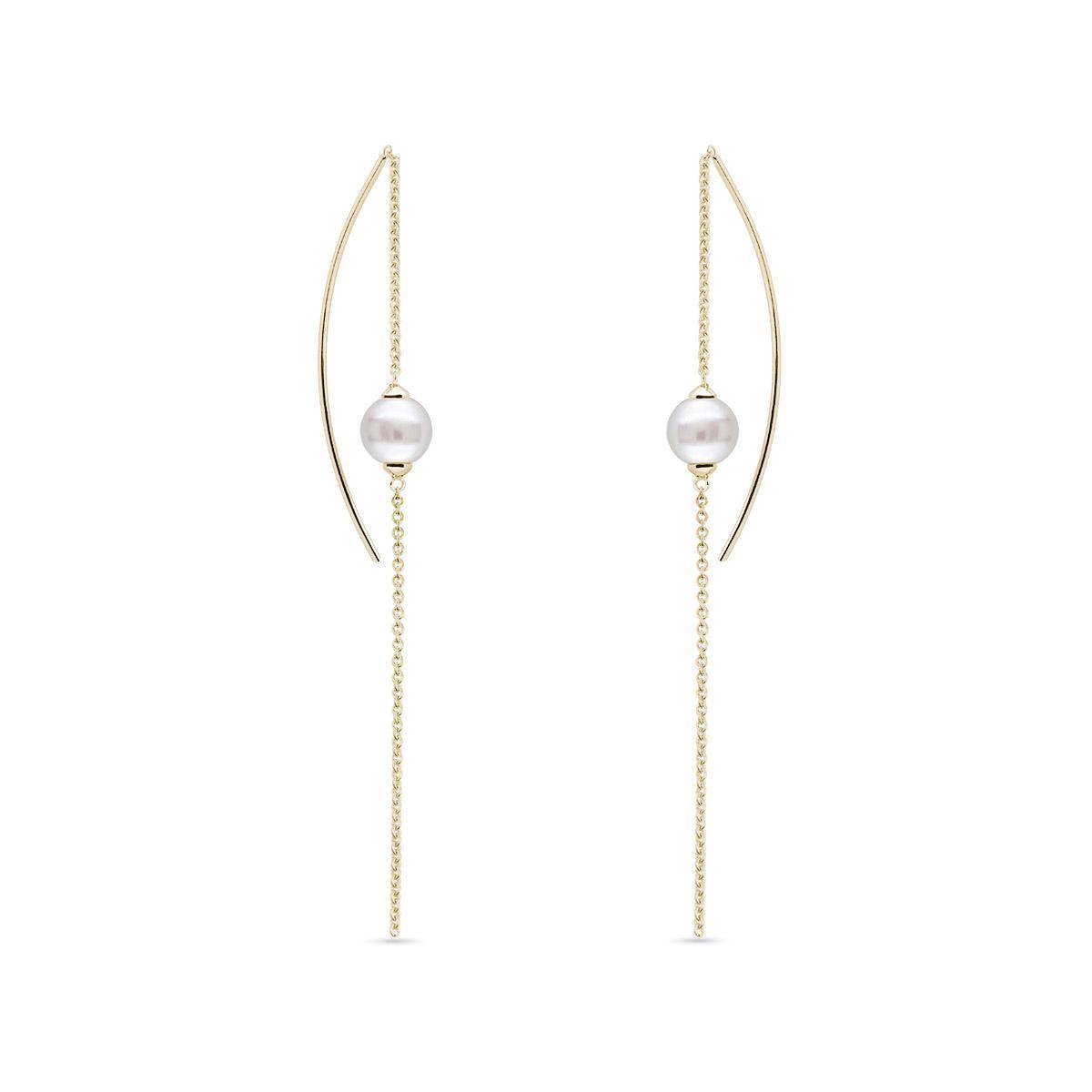 Visací náušnice ze žlutého zlata se sladkovodní perlou Klenota, 11 900 Kč