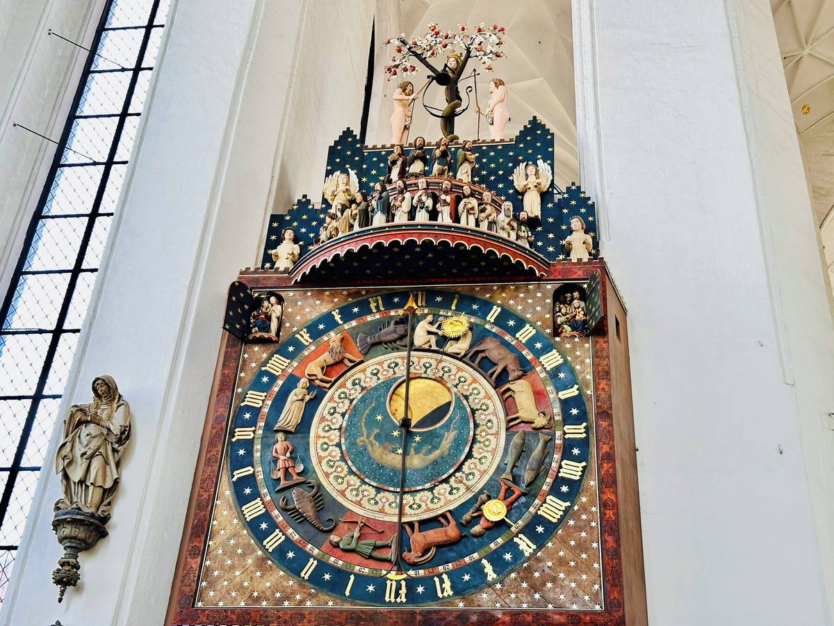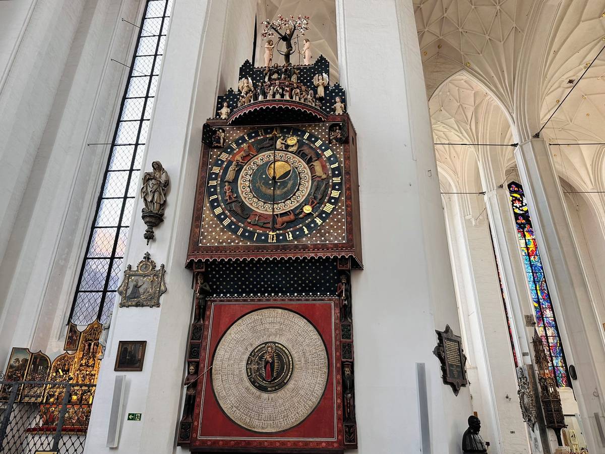 Gdaňský orloj se nachází v Mariánské bazilice, jednom z největších gotických cihlových kostelů na světě.