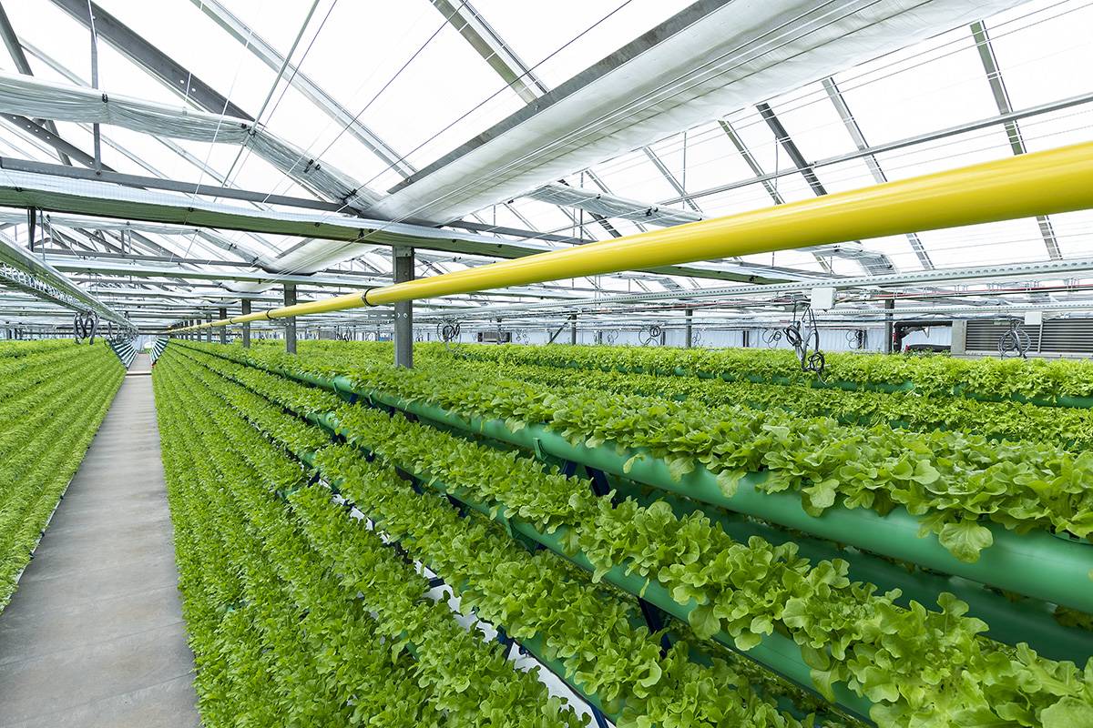 Jednou z výhod akvaponie je nezávislost na zemědělské půdě. Všechno roste z vody, která obíhá dokola mezi rybí a rostlinnou částí farmy.