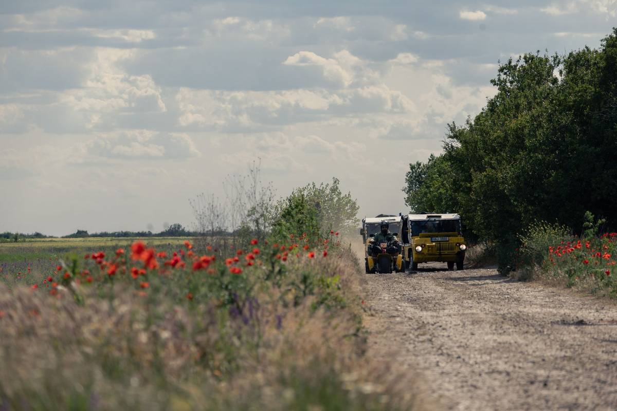 "Otáčíme k jihu a míříme do Maďarska. Poprvé v kompletní sestavě. Dva luazy alias žluté žáby pojmenované Vegu a Vóža (jména nám vymyslely děti ve školce) a tříkolka s mohutnými koly Honda ATC200, na které jede náš motorkář Marek. "