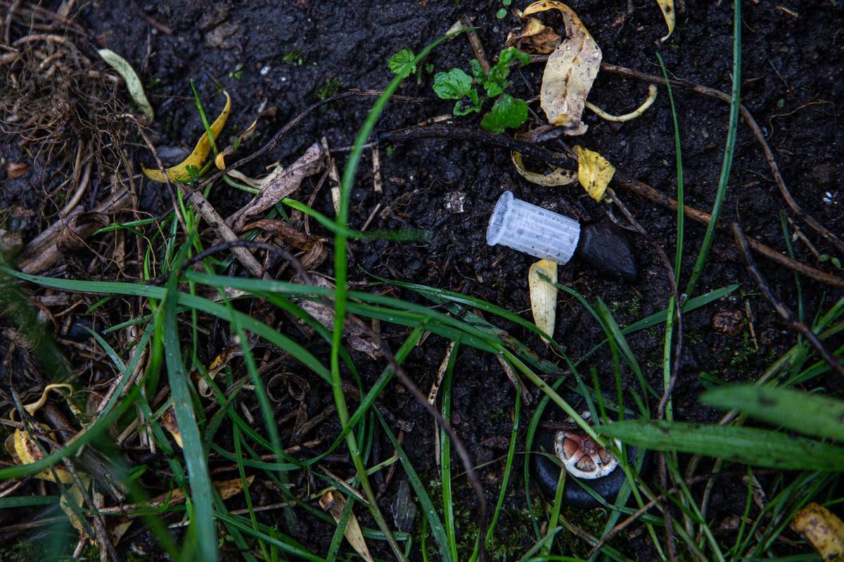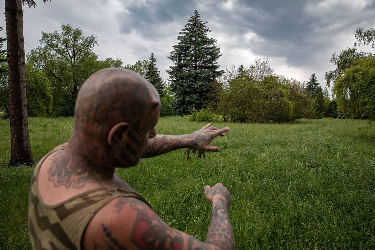 Podle Rudého je tady nezvykle uklizeno. "Ale je znát podle tmavých míst, kde ještě nedávno ležely hory nepořádku," ukazuje Rudý na černé ostrovy v plevelu.