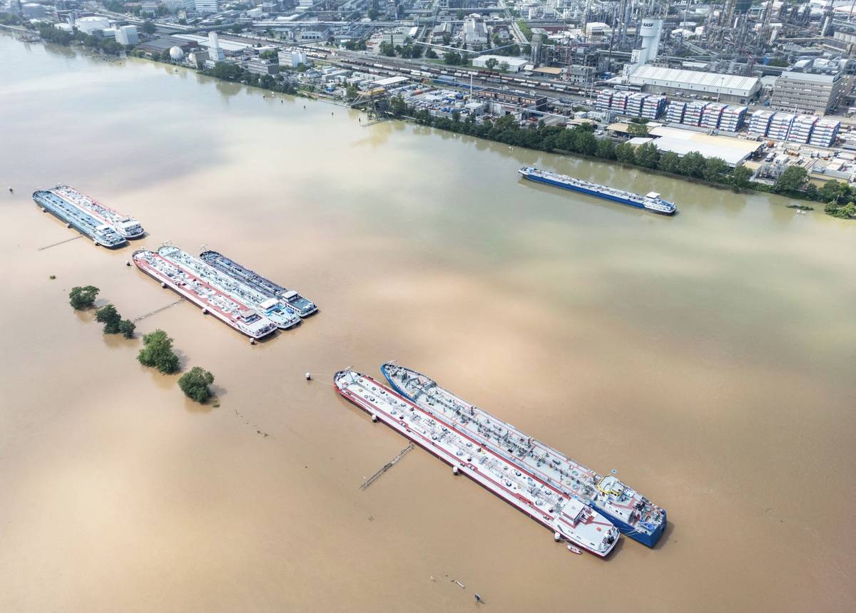 Kvůli vydatným lijákům na jihu Německa se zvedla také hladina Rýna, který je pro německou říční dopravu hlavní tepnou. Na horní a střední části toku se plavba zastavila, neboť některé části řeky nejsou za současné povodňové situace splavné. Situace zůstavá také napjatá v bavorském povodí Dunaje.