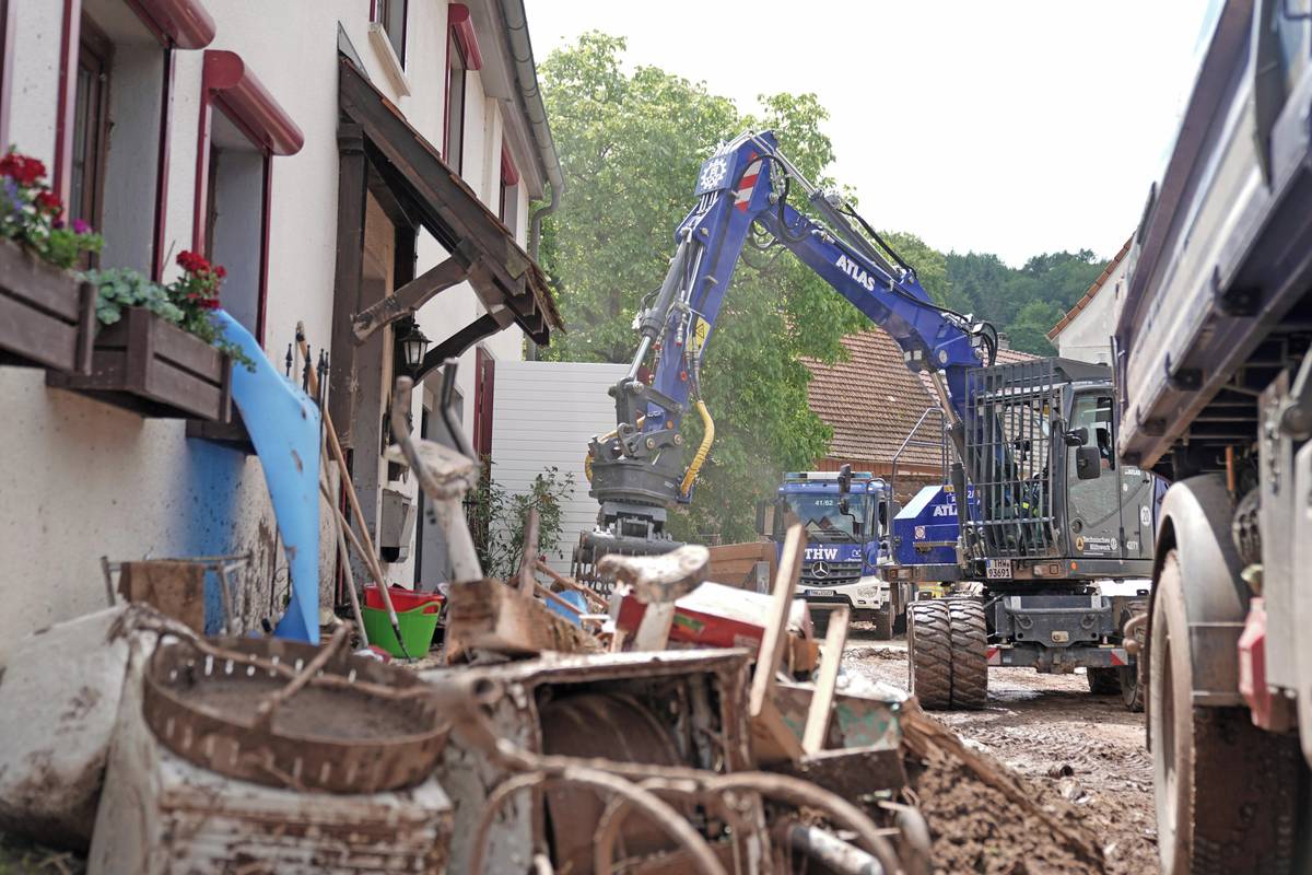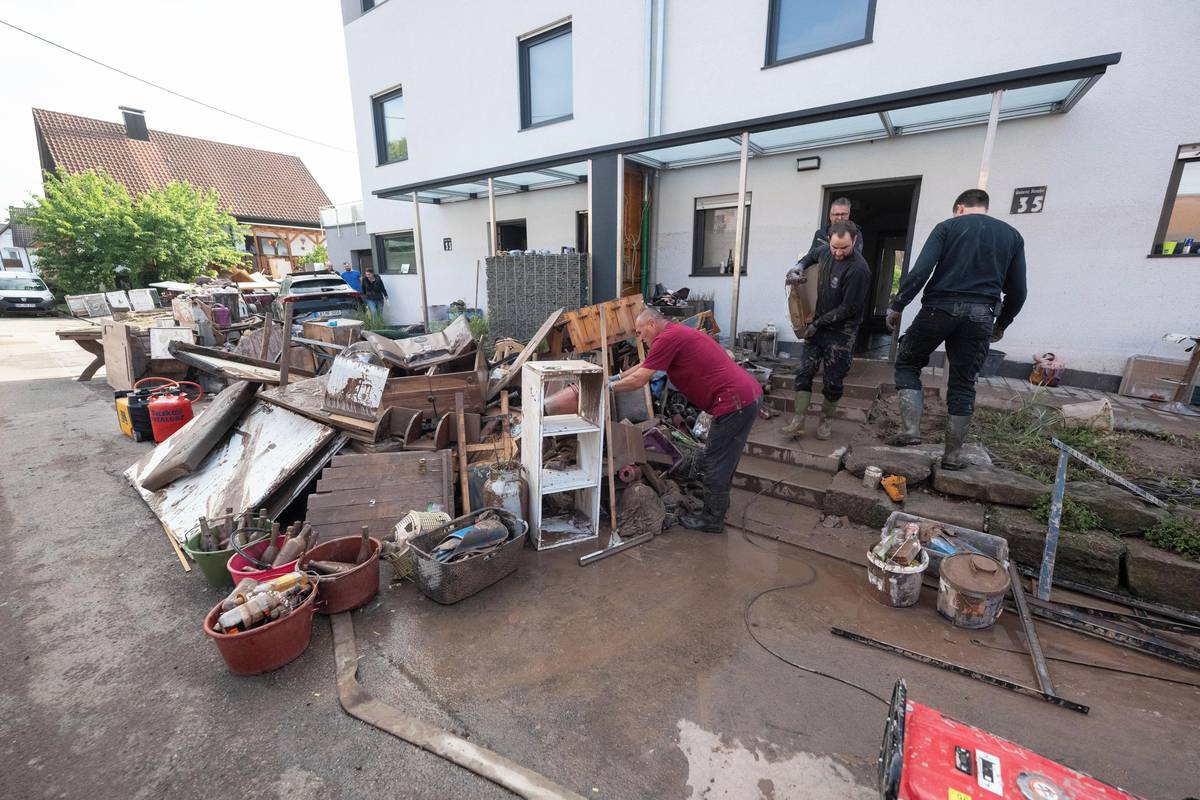 Norbert Grychnk už od nedělního rána nespal. „Voda všechno zničila,“ řekl reportérům německé veřejnoprávní stanice ZDF. Ve vesnici žije 40 let, povodně už zažil několikrát, ale takové škody prý ještě neviděl. (Rudersberg, 4. června.)