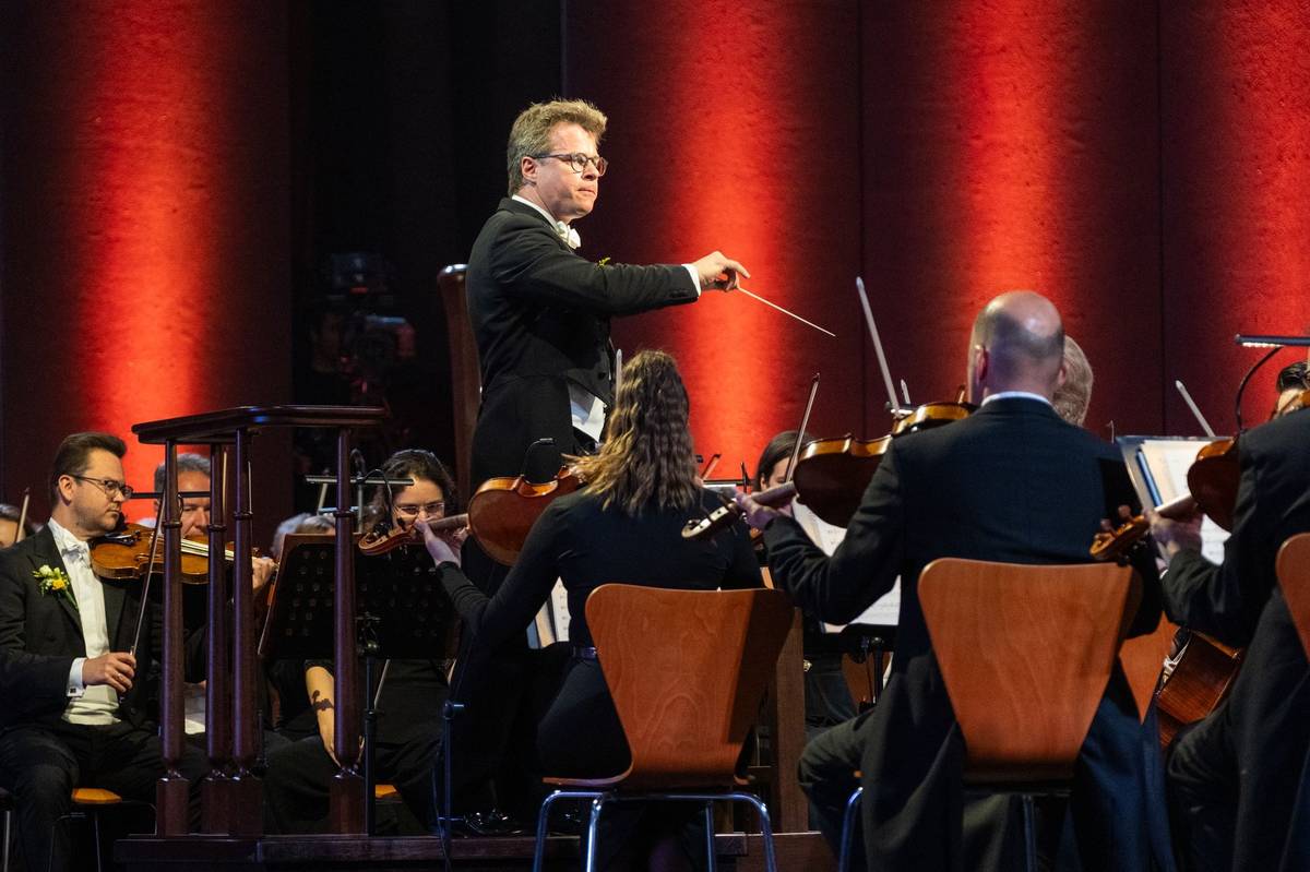 Několikrát k divákům v průběhu večera promluvil ředitel orchestru David Mareček.