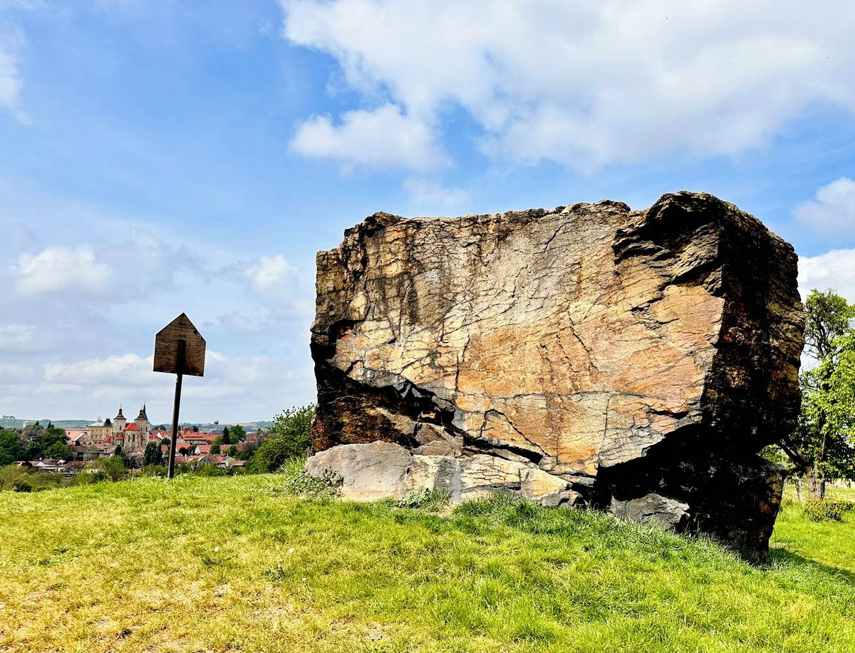 Od Lechova Kamene jsou půvabné výhledy na nedaleké město Kouřim.