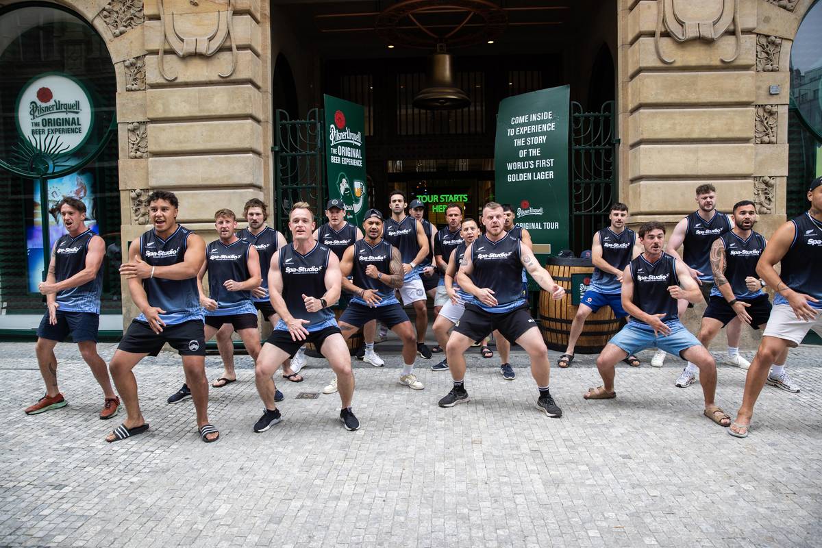 Hráči z Nového Zélandu se v pátek fanouškům ukázali na Václavském náměstí, kde předvedli svou haku.
