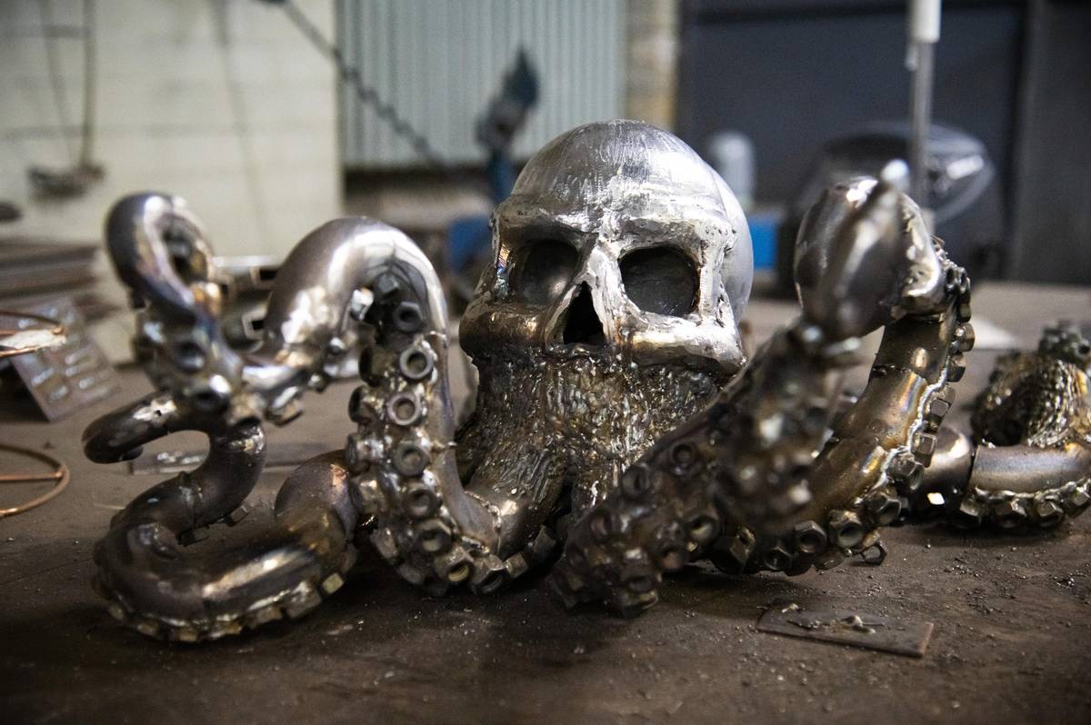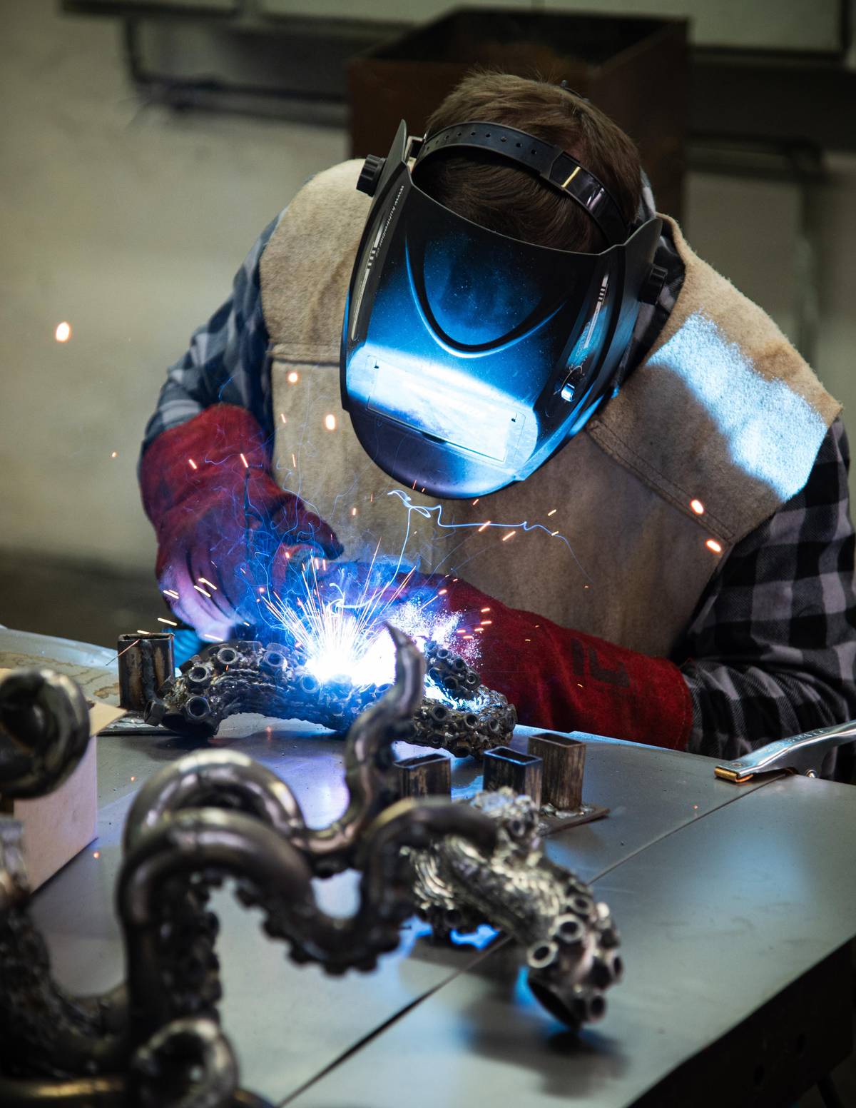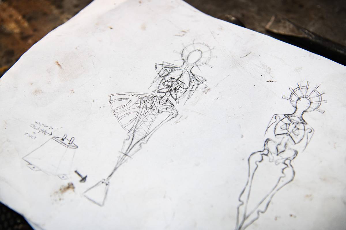 Ellen si stejně jako Tomas nejdřív nakreslí náčrt své sochy a poté postupně tvaruje ze železa jednotlivé části.