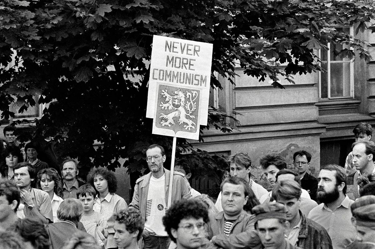 Antikomunistická manifestace, Praha 12. května 1990 (ukázka z výstavy a knihy Dany Kyndrové Devadesátky).