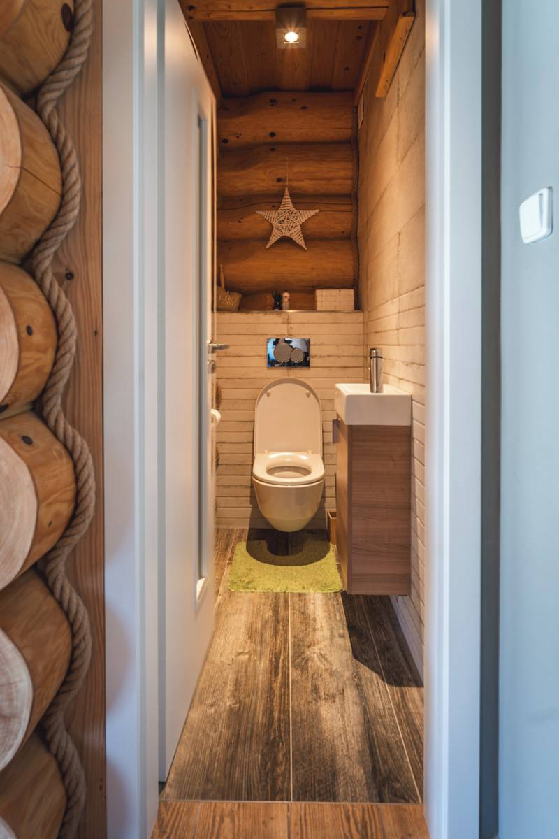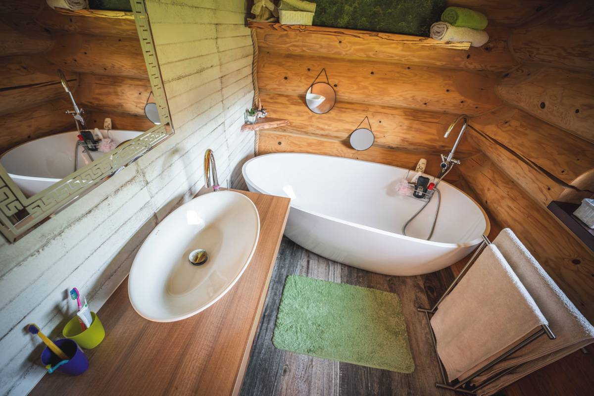 I ve srubu lze koupelnu vyřešit stylově a moderně