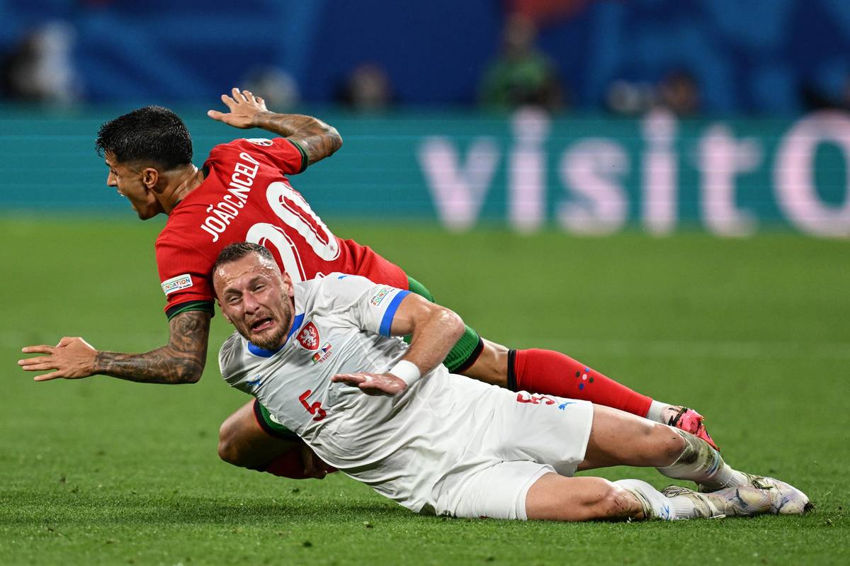 Vladimír Coufal (níže na fotografii) v souboji s Joaem Cancelem na Euru