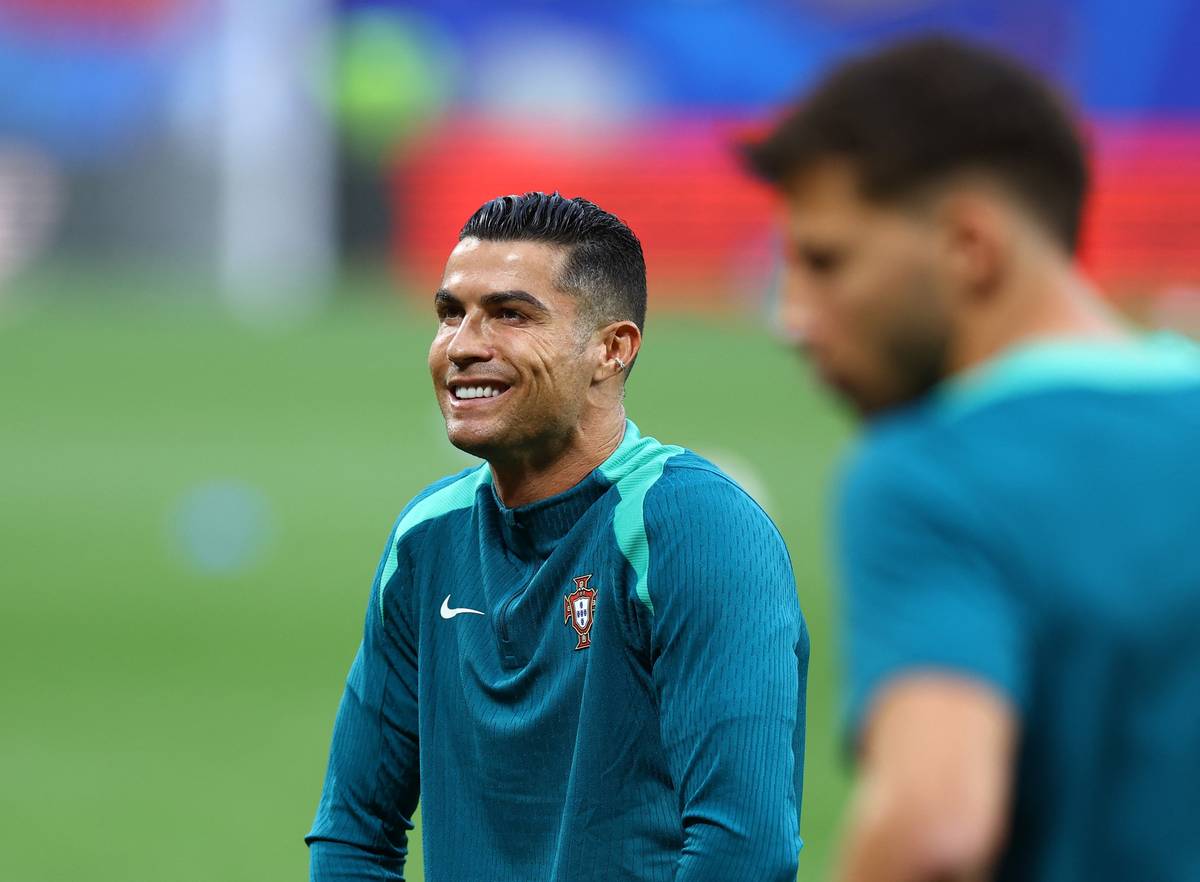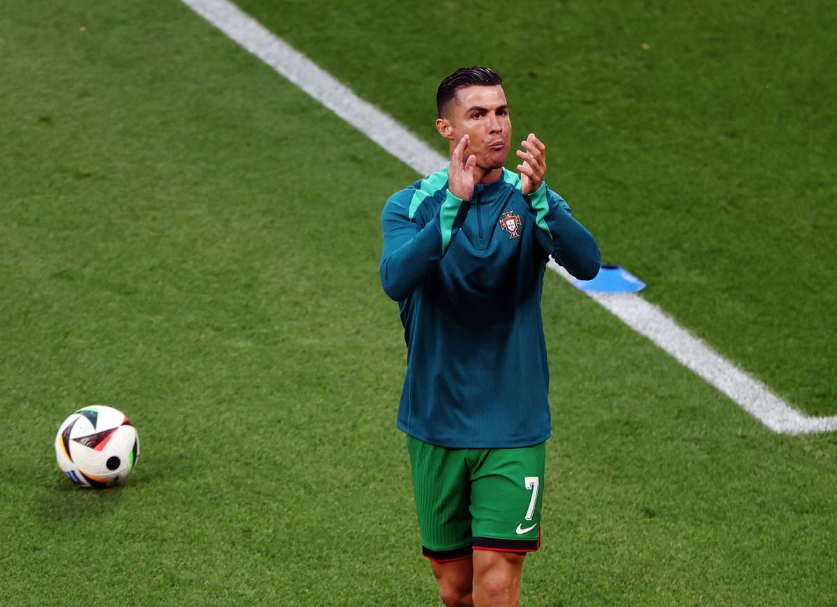 Legendární portugalský kapitán Cristiano Ronaldo při rozcvičce před zápasem s Českem