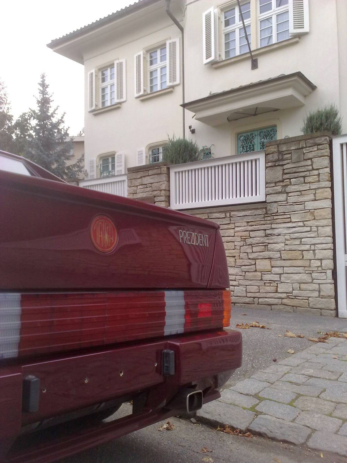 Prezident před vilou Václava Havla v pražských Střešovicích.