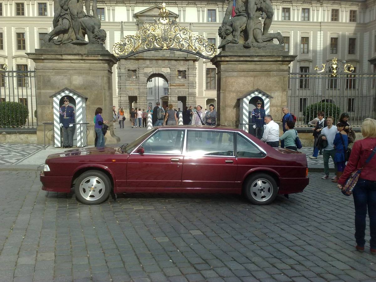 Hotová Tatra Prezident na stejném místě před Matyášovou branou na Pražském hradě v roce 1994.