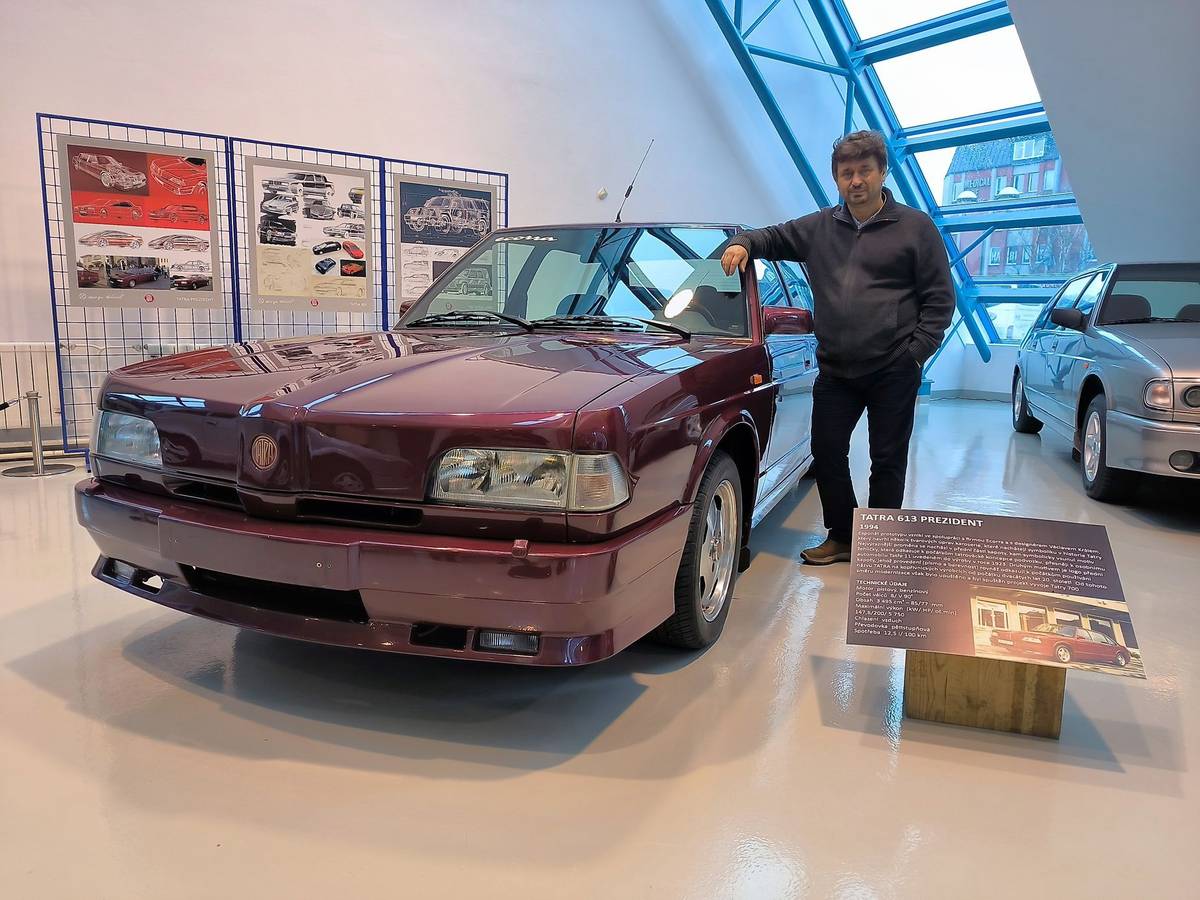Jiří Král u Tatry Prezident v kopřivnickém muzeu.