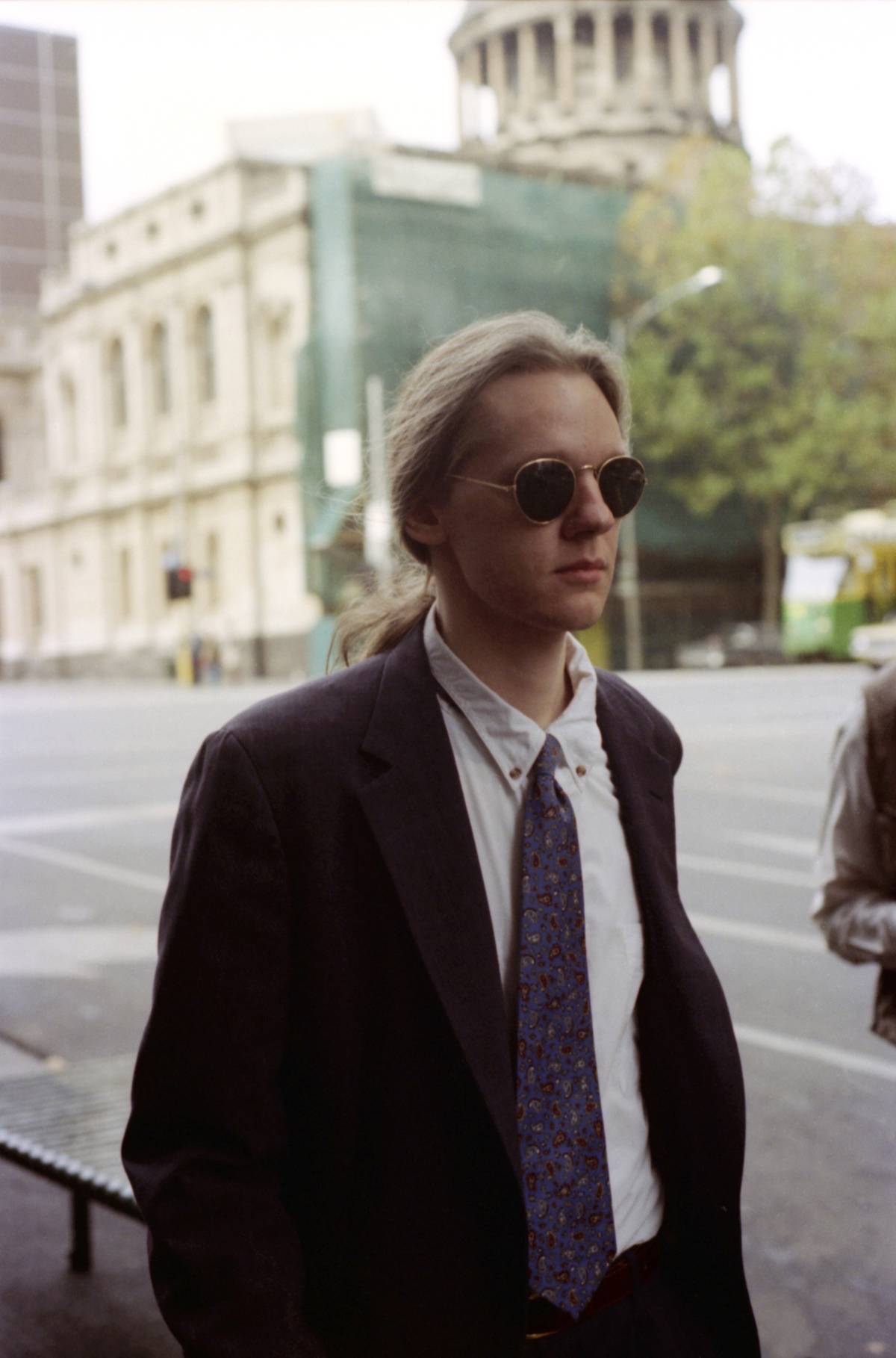 Potřeba vzpoury vůči autoritám provázela Assange od dětství. Během studií se dostal do komunity hackerů a pod pseudonymem Mendax začal napadat weby NASA a Pentagonu. Je také spoluautorem knihy o hackerství. V roce 1993 založil australského poskytovatele internetového připojení Suburbia, který umožňoval necenzurované zveřejňování informací. Na fotografii odchází Julian Assange od soudu v Melbourne poté, co byl obviněn z počítačového hackerství, psal se 6. květen 1995.