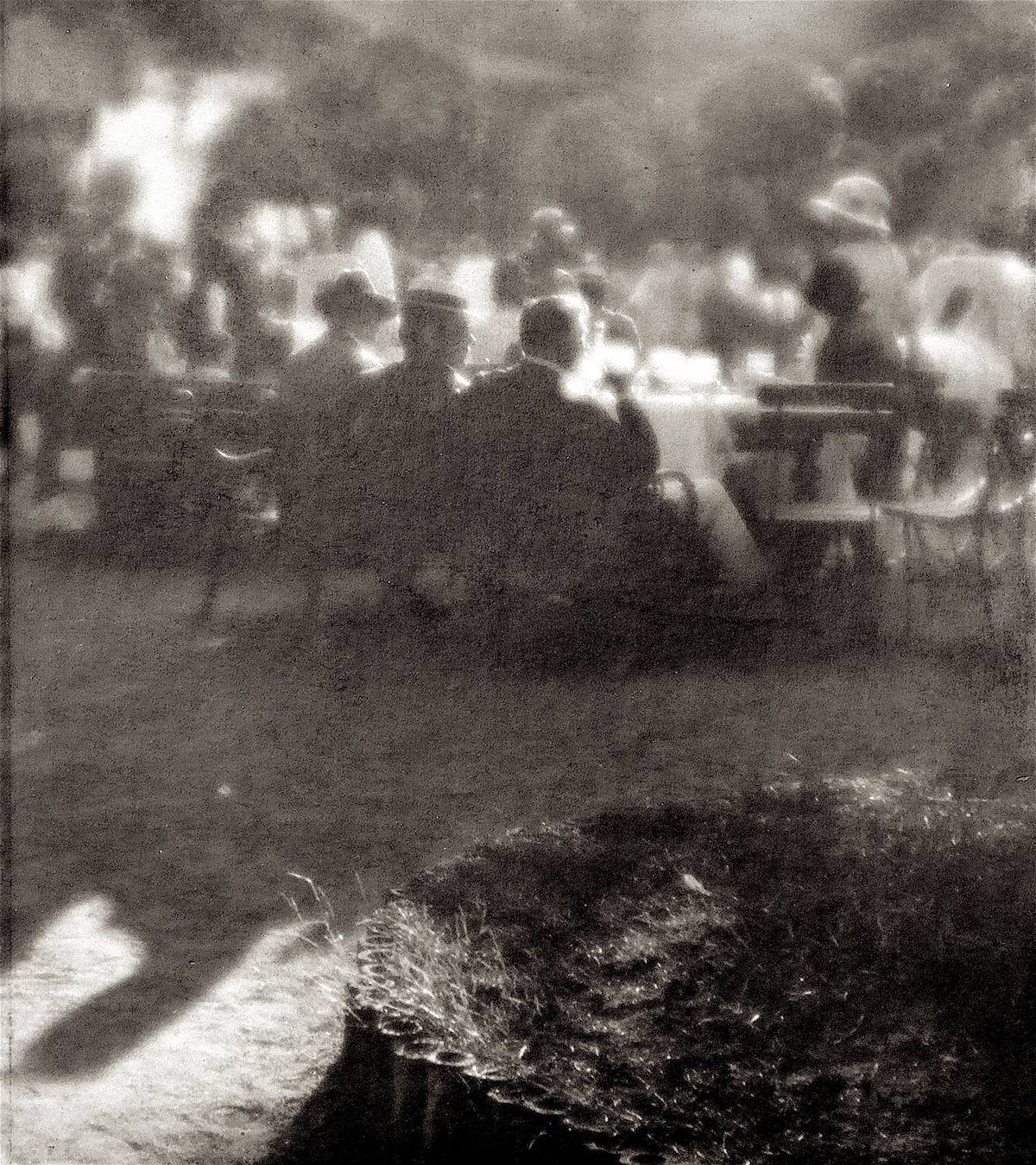 Nedělní odpoledne na Kolínském ostrově, 1924. Ukázka z výstavy "... a hudba hraje ..." v pražském Atelieru Josefa Sudka.