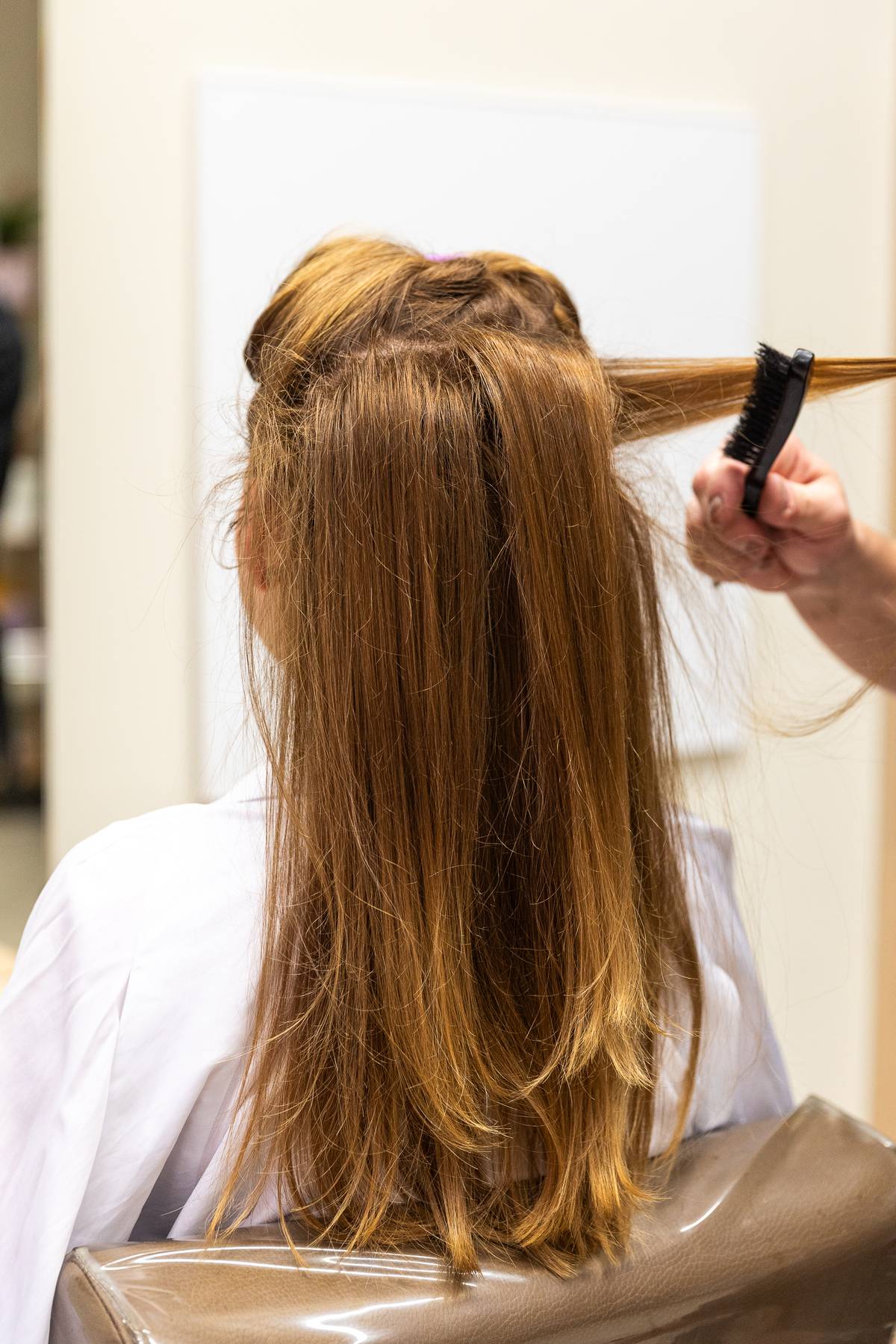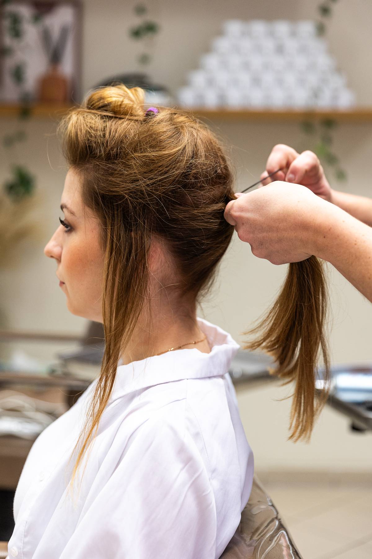 Na temeni vlasy opatrně povytahujte, aby účes získal další objem