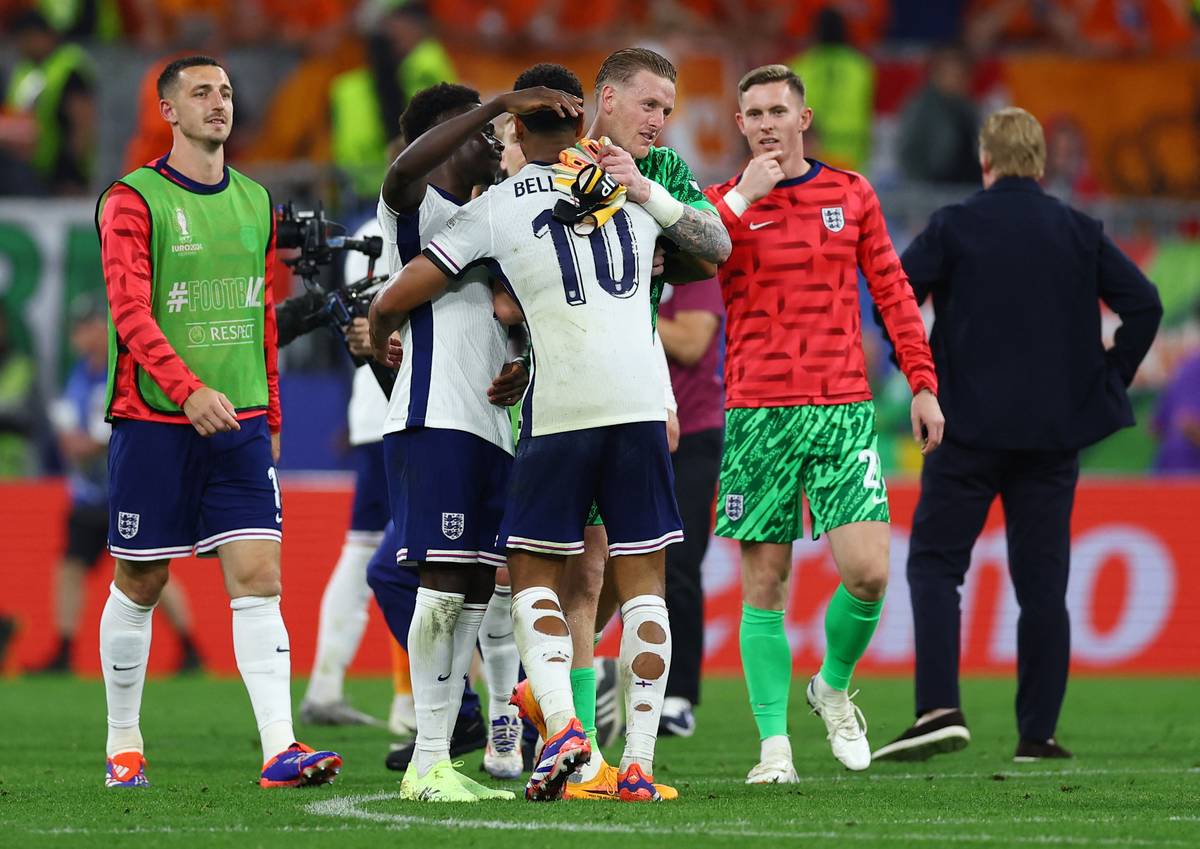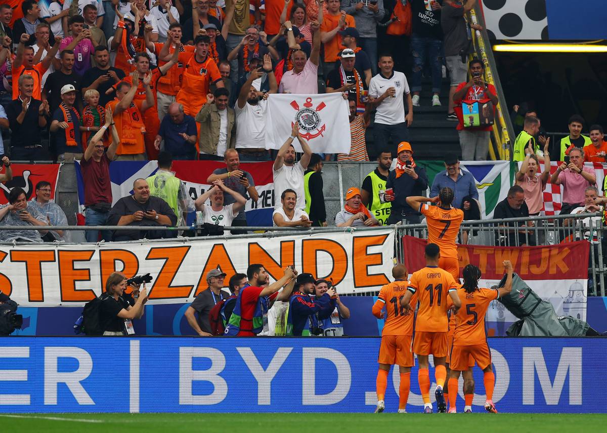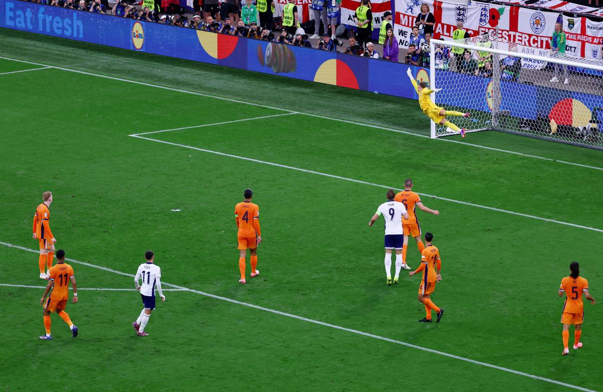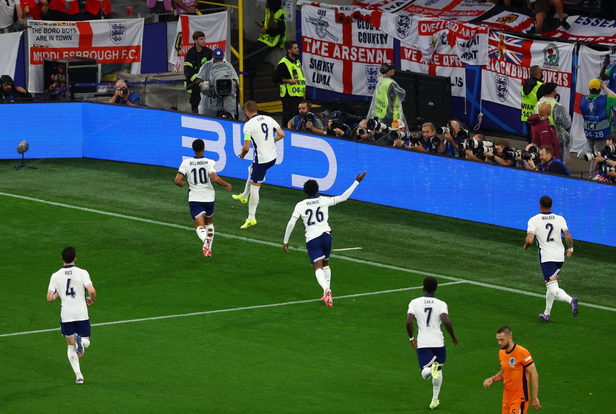 Fotbalisté Nizozemska se radují z úvodní branky semifinálového duelu s Anglií