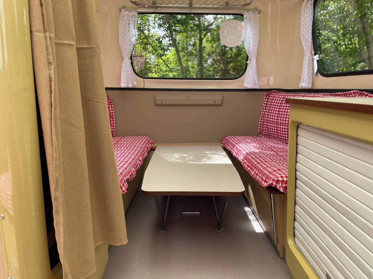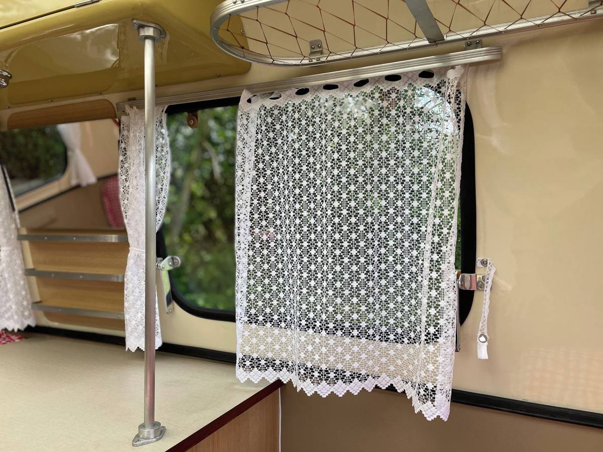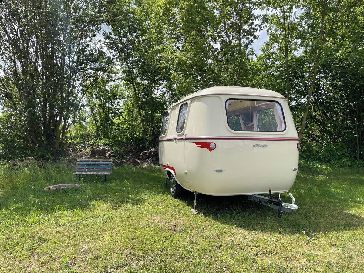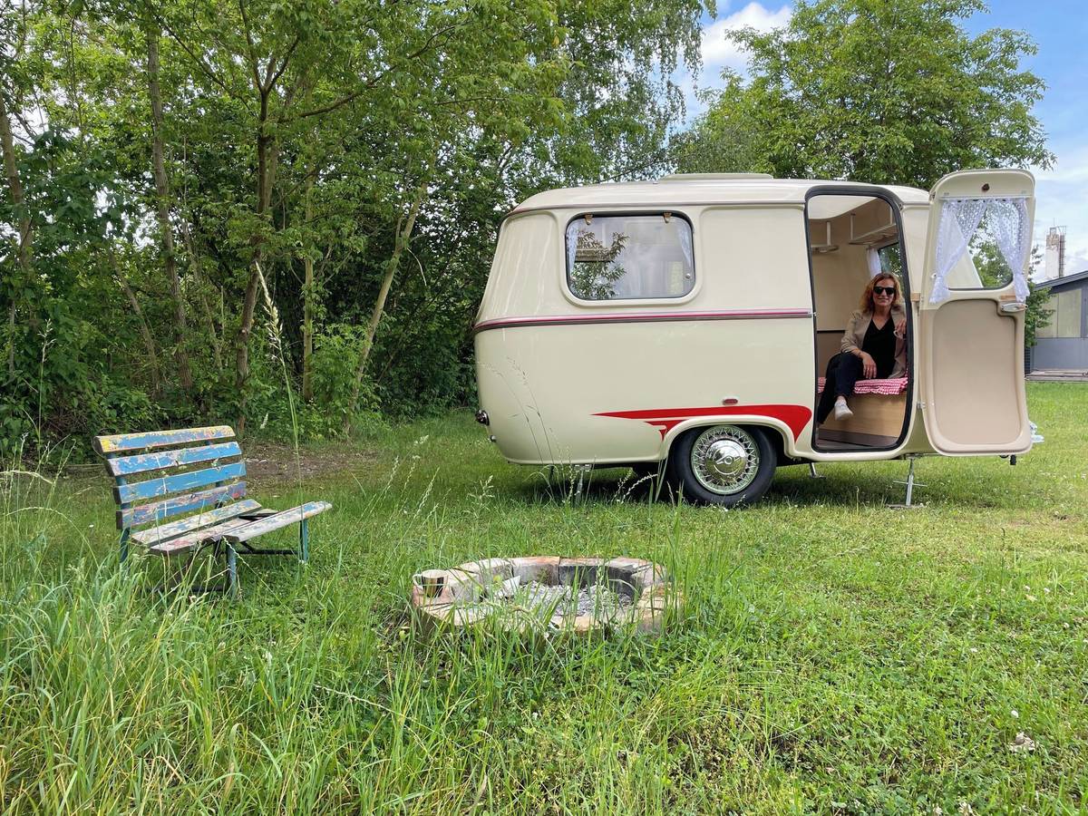 Vždyť uvnitř spíš připomíná přívěs pro panenky. Přesto se tu na lavici, která se rozloží, mají vyspat tři osoby, na lavici vpředu pak čtvrtá. Karavan měl posloužit rodině s dvěma dětmi.