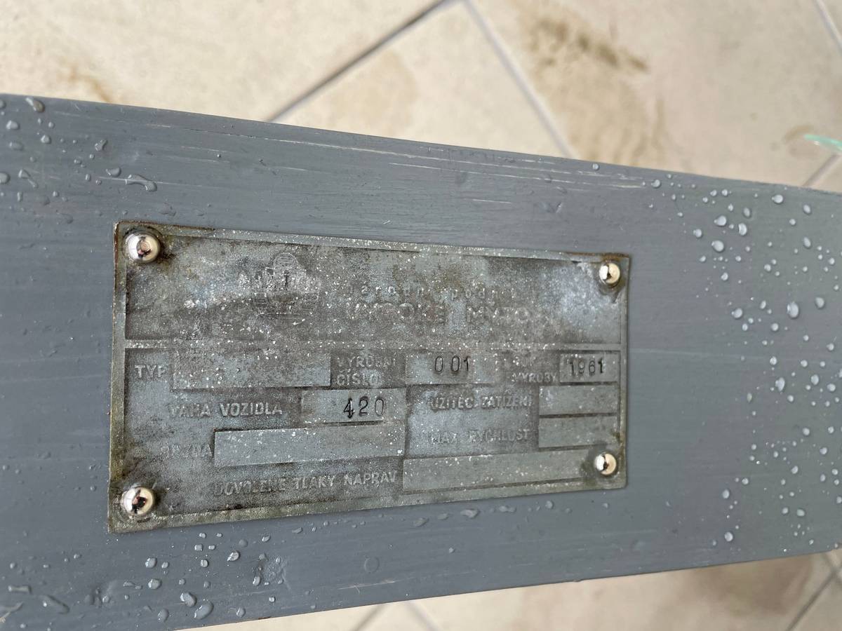 Štítek konkrétního kusu informuje, že jde o první vyrobený kus.