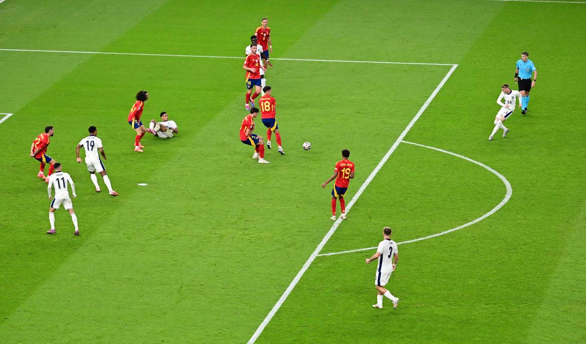 Gólová střela Nicá Williamse (v červeném), která otevřela skóre finálového duelu
