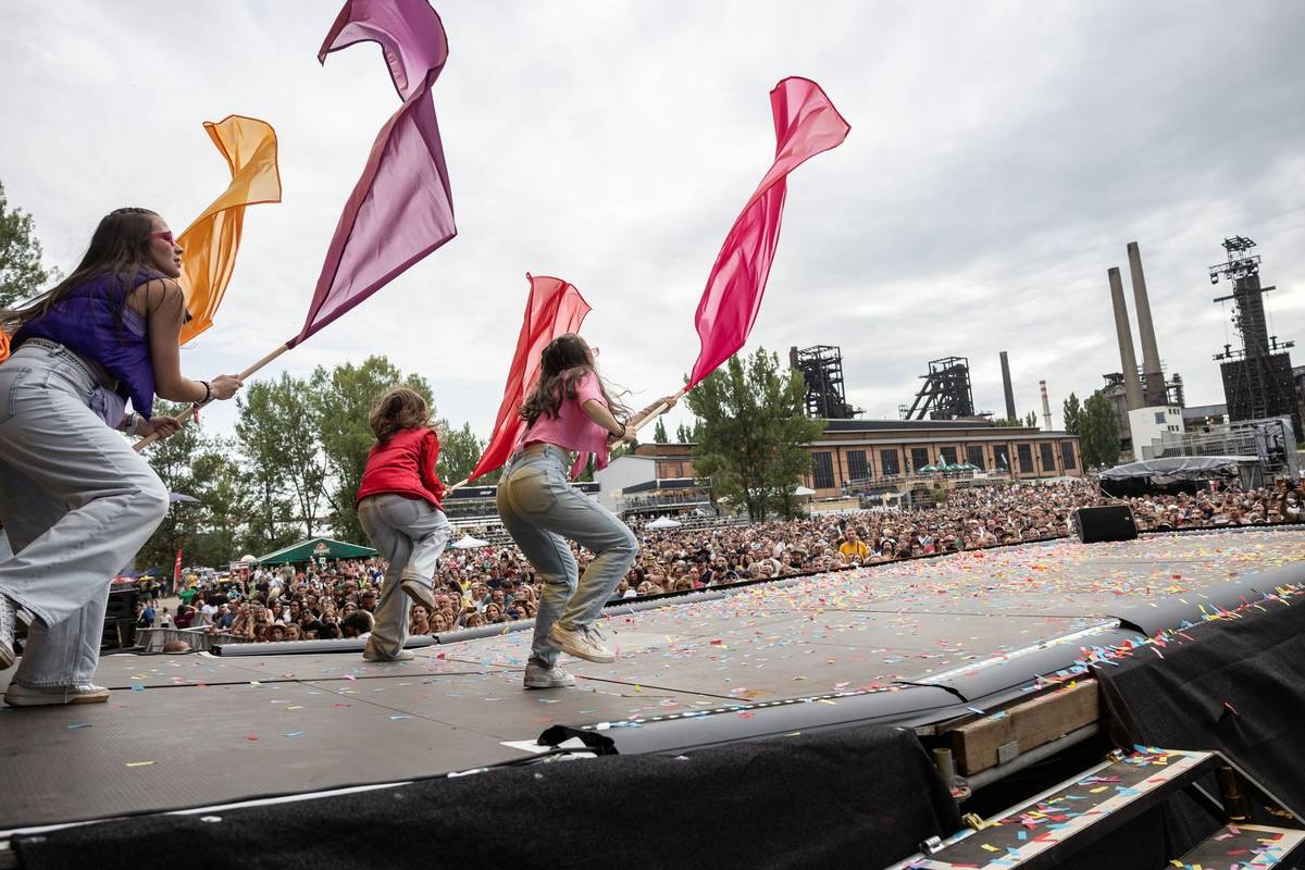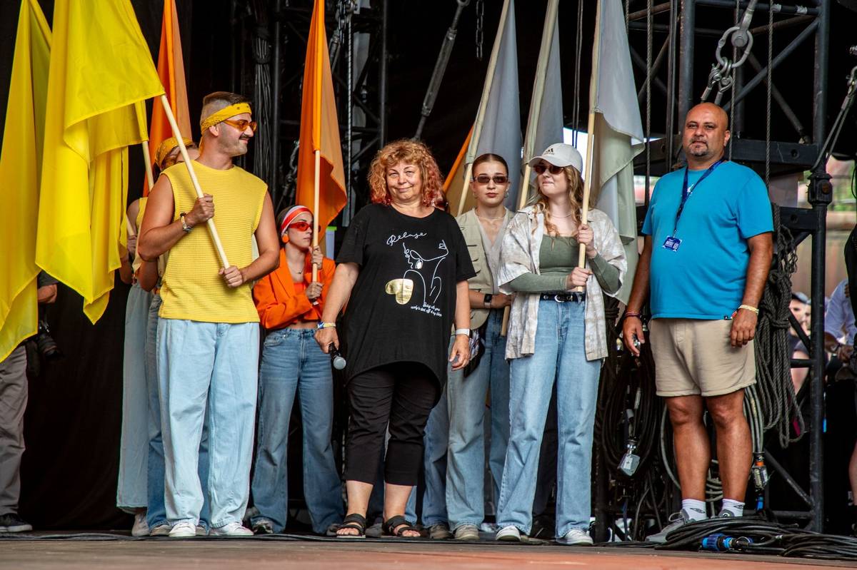 Kromě Holušové (uprostřed) diváky pozdravili dramaturg Filip Košťálek, ostravský primátor Jan Dohnal z ODS nebo Jan Jírovec ze skupiny Rockaway, která od roku 2022 vlastní většinový podíl v pořádající společnosti. "Všichni tady považujeme festival za zahájený," zvolala nakonec Holušová...