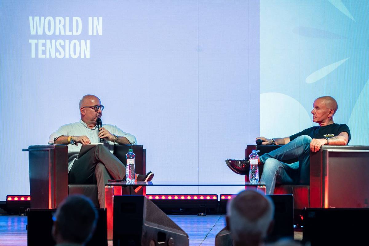 Součástí festivalu je také letos debatní fórum Meltingpot. Ve středu byl jeho prvním hostem spisovatel Irvine Welsh (vpravo), autor románu Trainspotting. Zpovídal ho Miroslav Bárta.