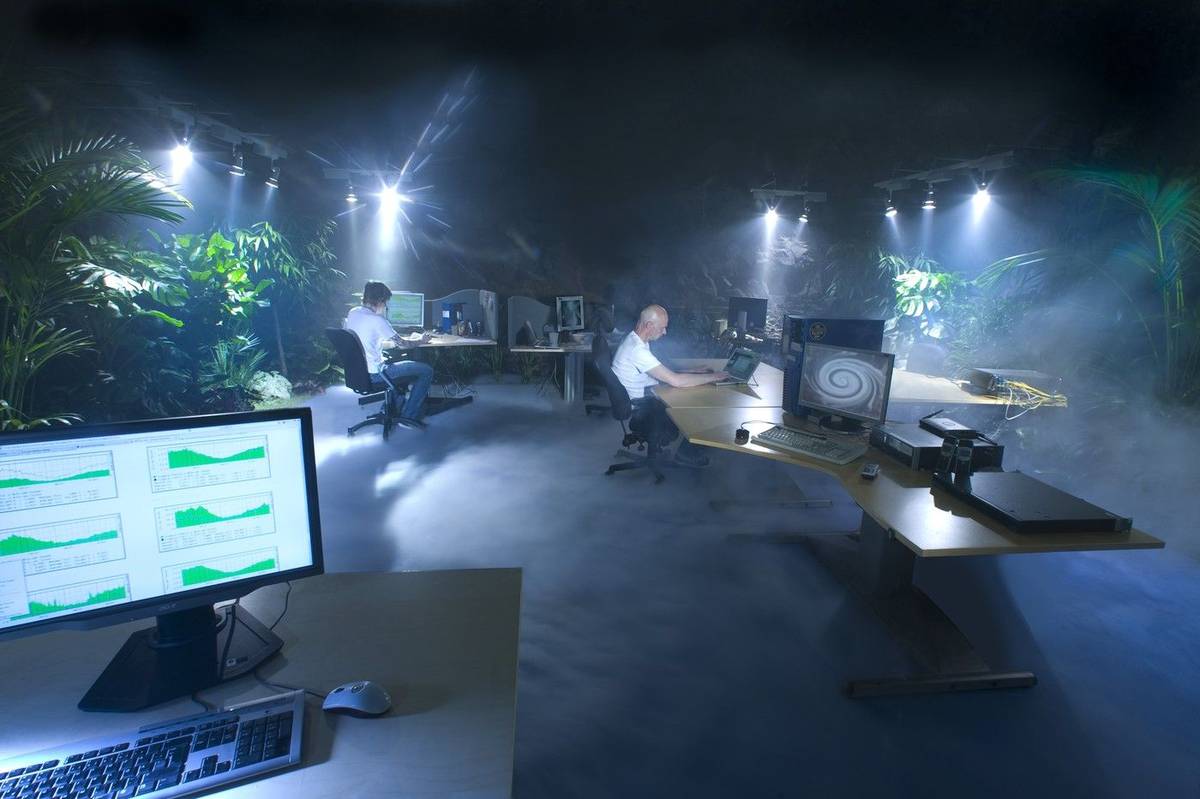Příjemné pracovní prostředí v 30 metrech pod povrchem zajišťuje umělé denní světlo, zelené stěny...