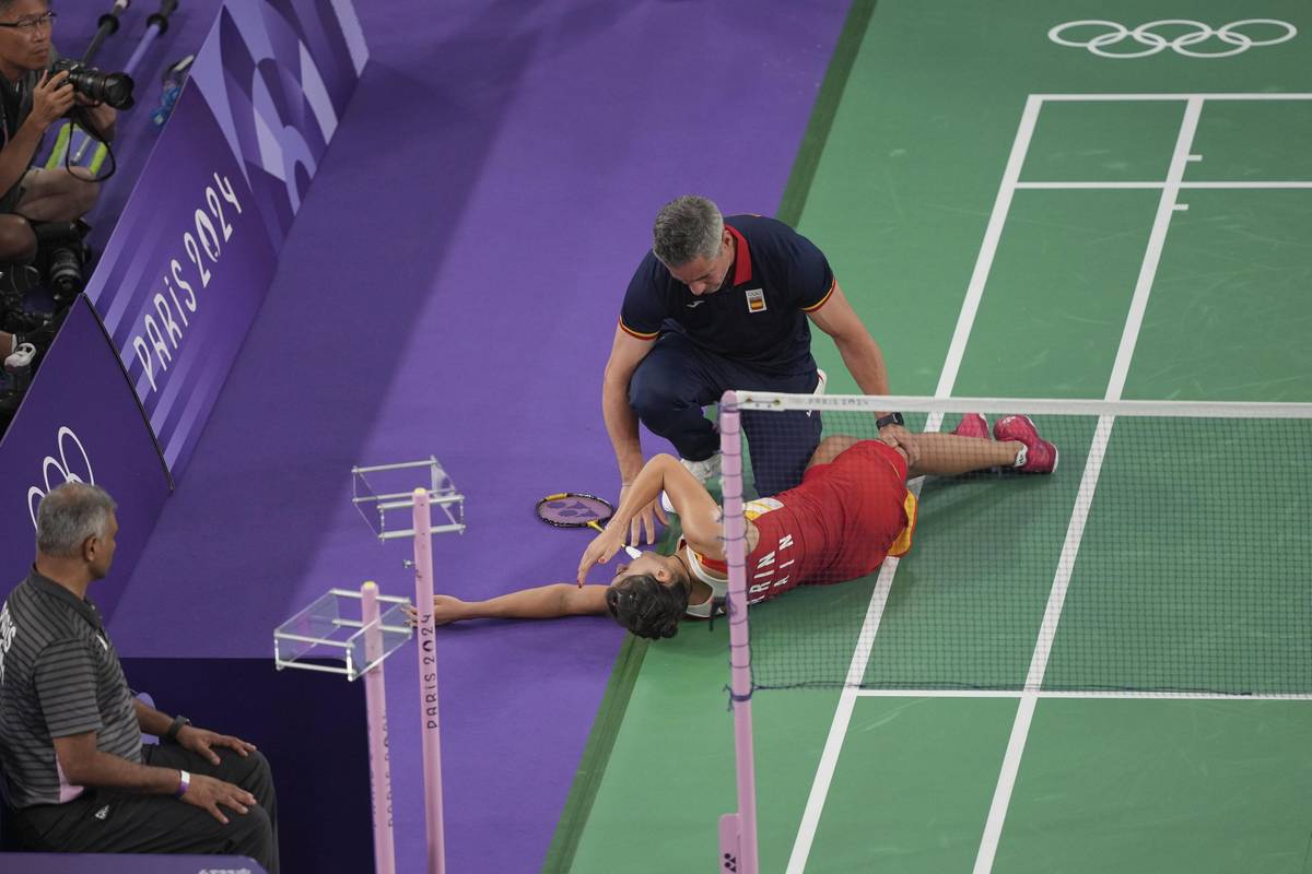 Carolina Marínová musí na olympijské zlato z Paříže zapomenout. V semifinále badmintonové dvouhry ji zradilo koleno.