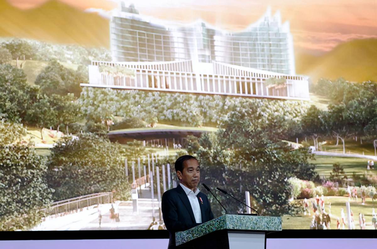 Indonéský prezident Joko Widodo s vizualizací Nusantary