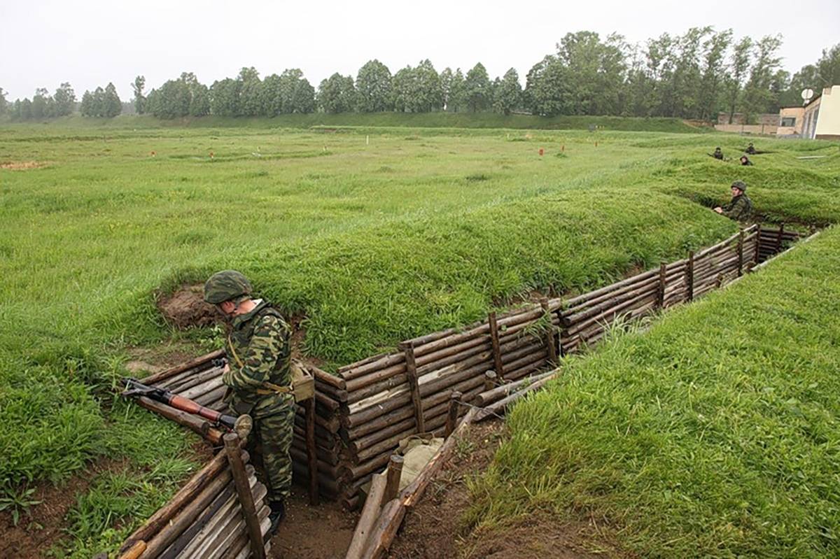 Moskva varovala před nebezpečím vojenského obsazení elektrárny. V minulosti sama poslala vojenskou techniku do ukrajinské Záporožské jaderné elektrárny. Snímek ukazuje další úsek zákopů poblíž Lgova.