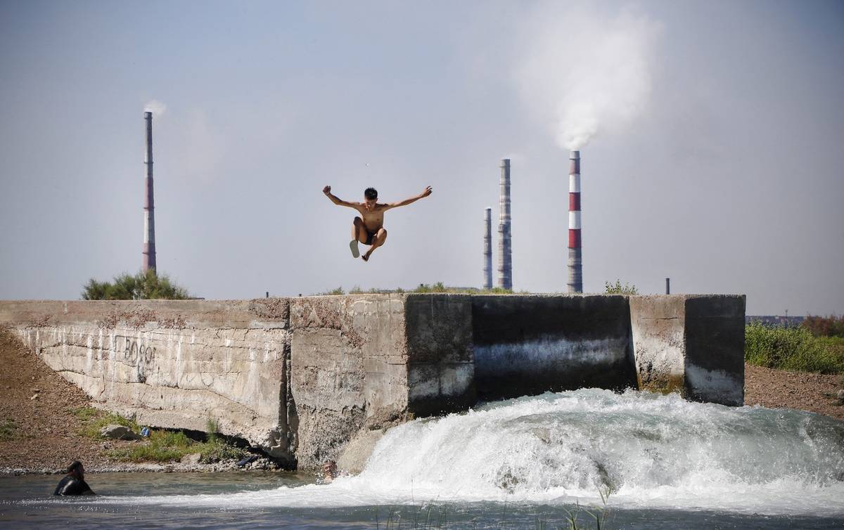 Pokud není jasný viník, stačí zvednout oči a přičichnout ke vzduchu. Na městské pláži se totiž rekreanti koupou s výhledem na kouřící komíny obrovského metalurgického závodu Kazachmys, největšího kazachstánského producenta mědi, kolem kterého město vzniklo.