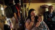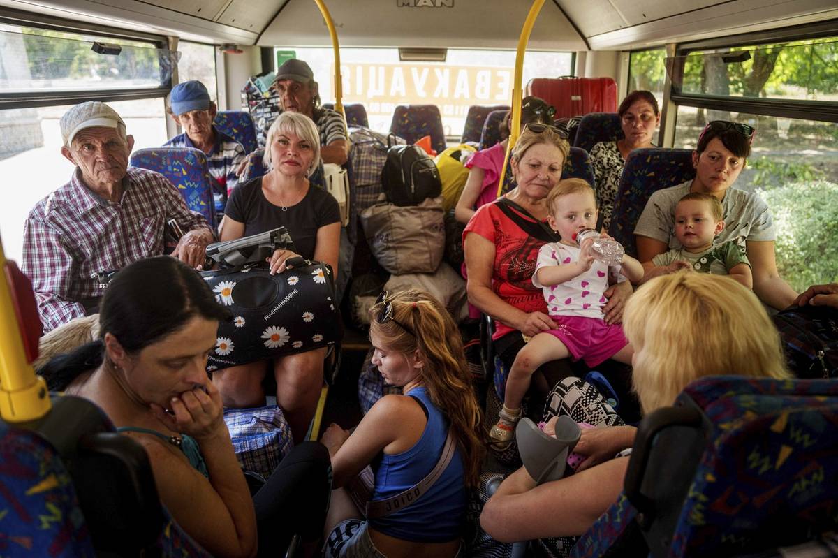 (Rodina v evakuačním vlaku v Pokrovsku, 19. srpna.)