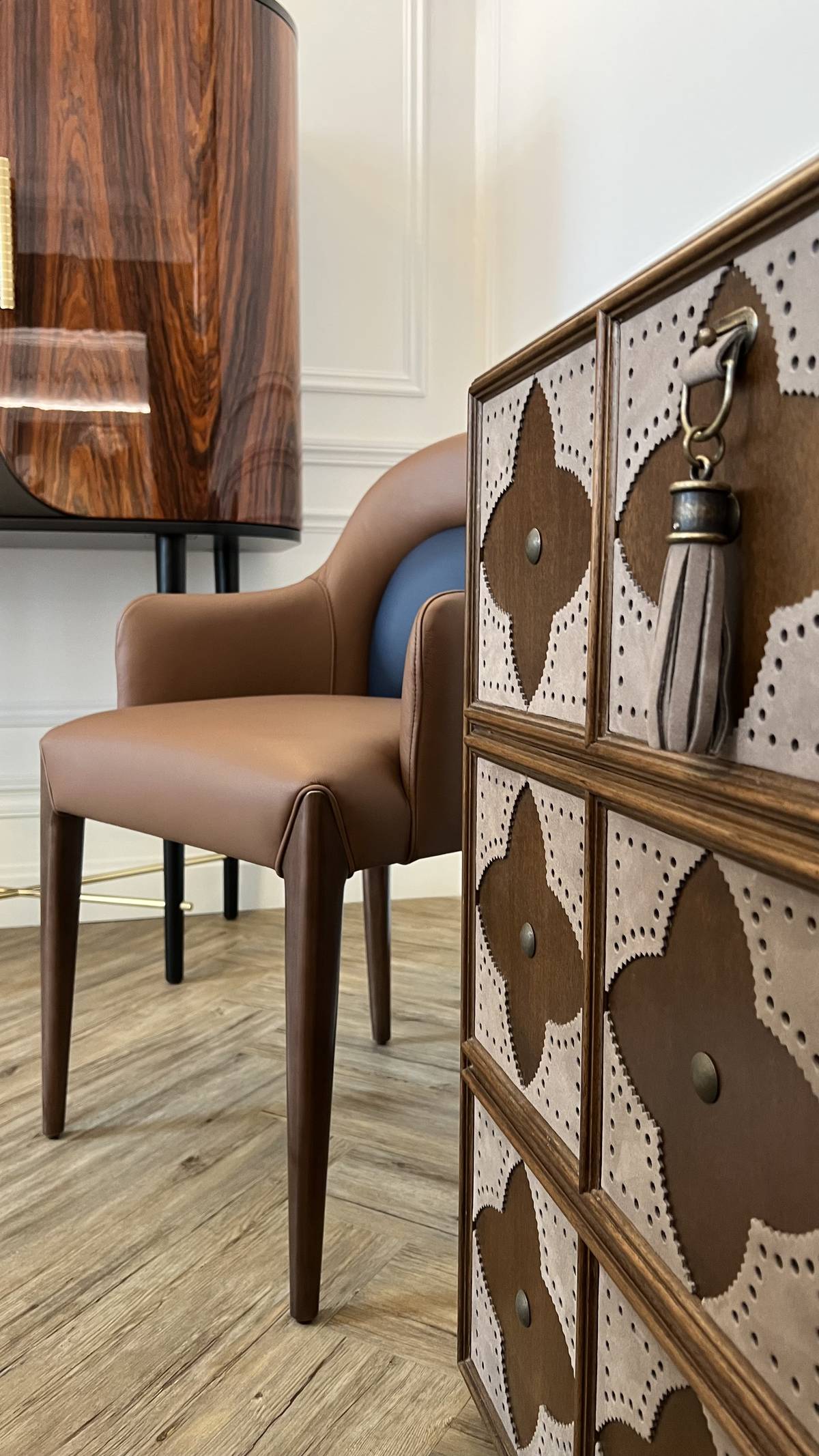 „Jižní evropské země milují dýhy a kůži. Představte si, že dýhu umí dokonce sešívat speciálním lepidlem ve stylu zig zag, které následně zmizí,“ dodává bytová designérka.