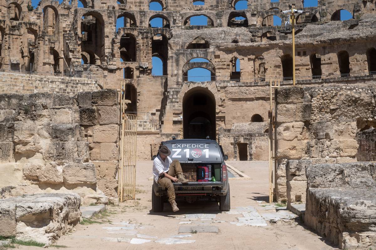 V Tunisku měl Vaňourek jedinečnou příležitost vjet autem do amfiteátru El-džem.