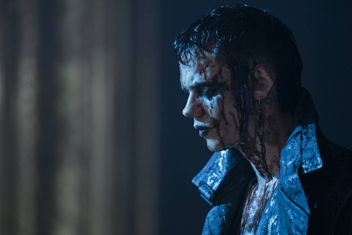 Fotografie z natáčení filmu Vrána. Bill Skarsgård na Nákladovém nádraží Žižkov.