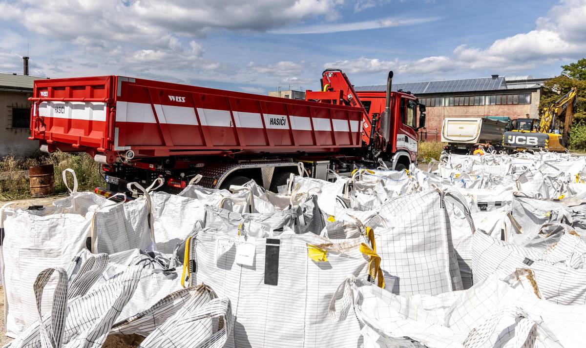 Ředitel Pyrotechnické služby Policie ČR Karel Čadil. Ten uvedl, že k obestavení pumy se využilo 440 big bagů s pískem. Pytli s pískem a dalšími ochrannými pomůckami pyrotechnici zajistili také zásobníky s kyselinami a dalšími nebezpečnými látkami, které jsou součástí chemičky.