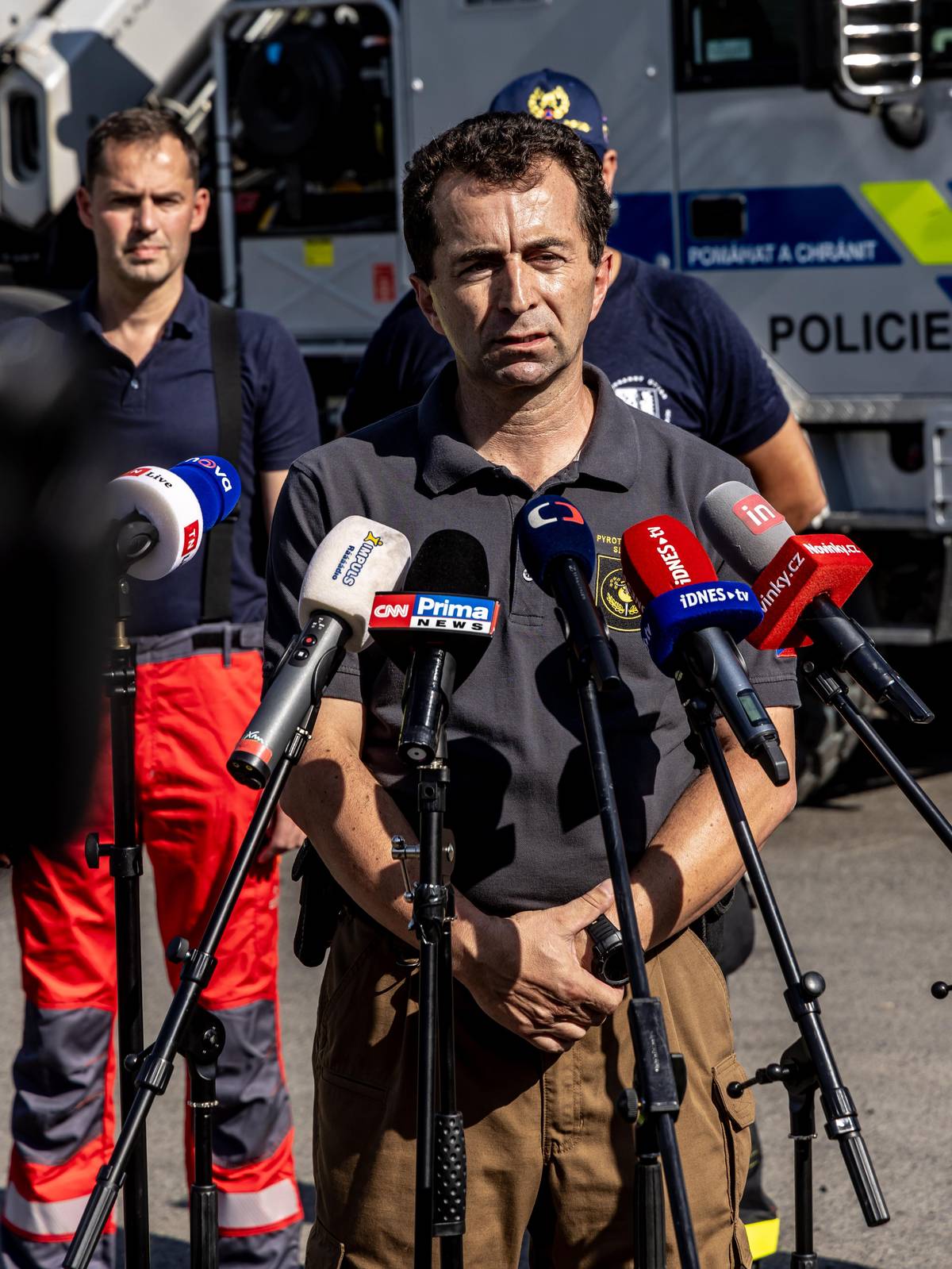 v 10:30 proběhl tiskový brífink, na kterém policie, pyrotechnici a hasiči vysvětlili, jak bude odstřel probíhat a kdo u něj bude zasahovat.