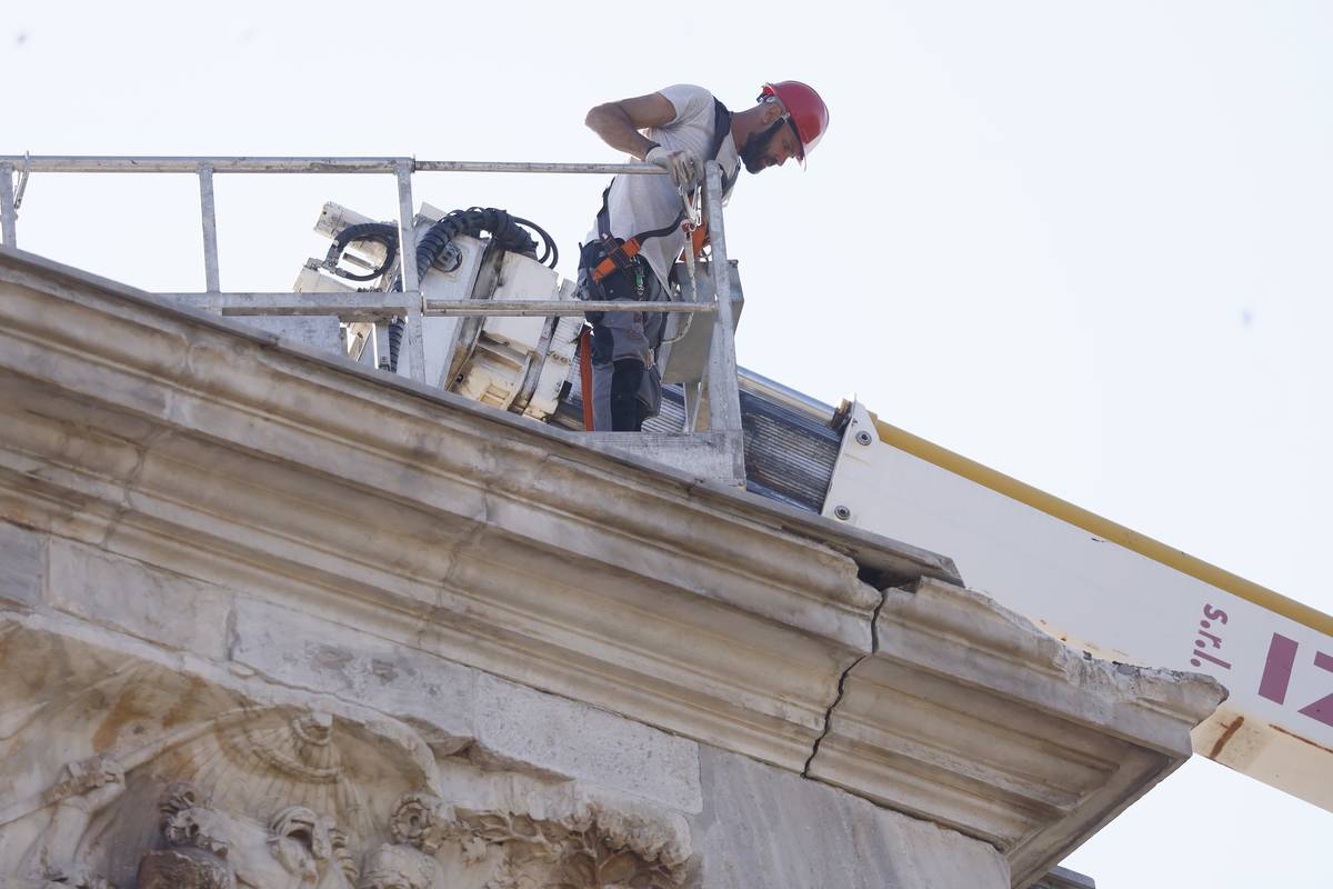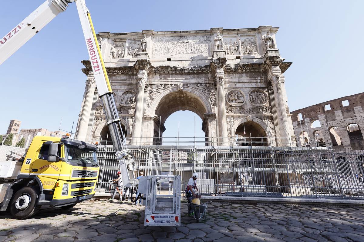 „Naši lidé dorazili na místo okamžitě po úderu blesku. Všechny úlomky byly sesbírány a zabezpečeny. Vyhodnocování škod již začalo a analýzy budou pokračovat zítra ráno,“ citovala agentura Adnkronos z prohlášení archeologického parku. Na snímku ze středy 4. září již vidíte inspekci Konstantinova oblouku.