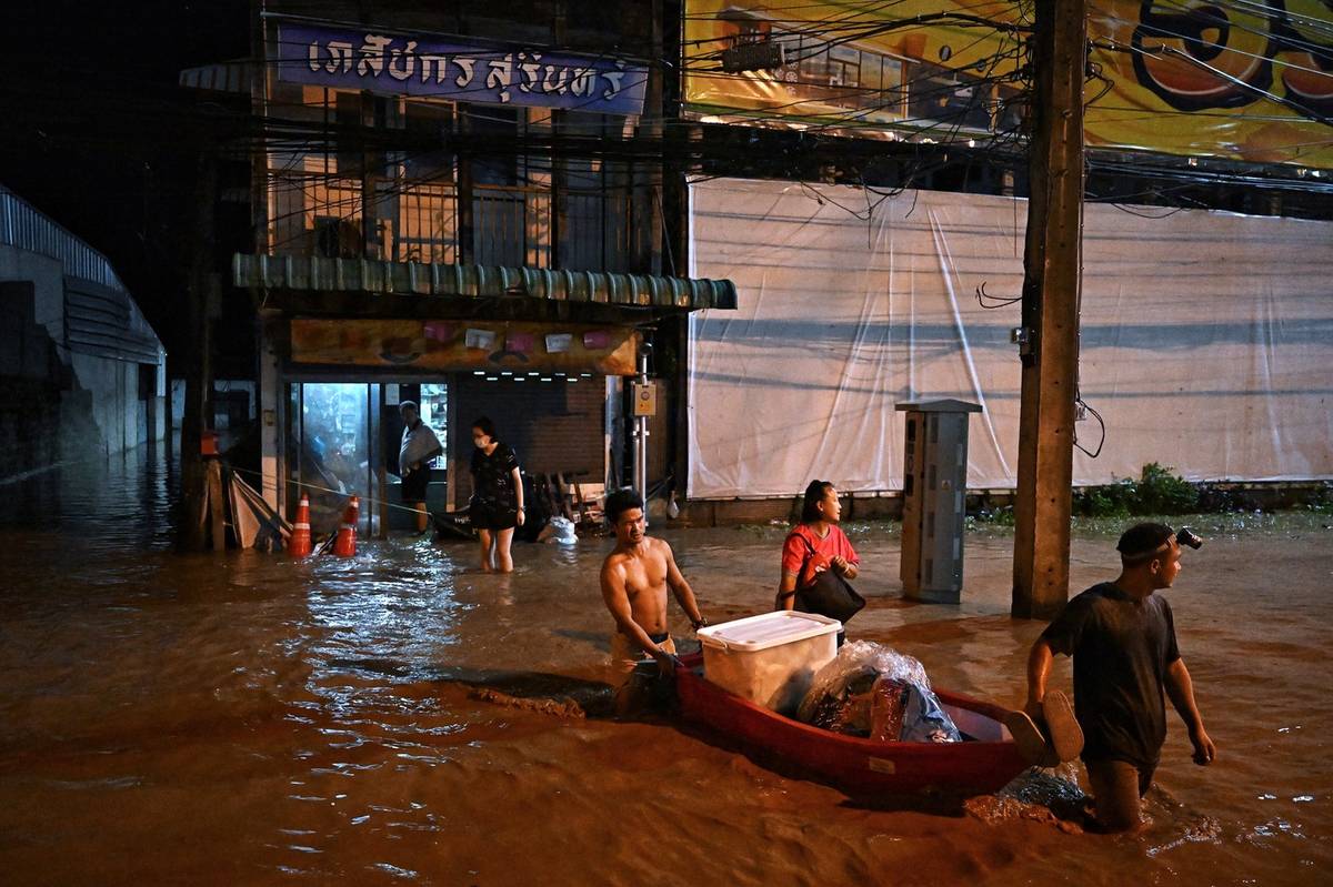 V okrese Mai Sai v provincii Chiang Rai, která sousedí s Myanmarem, se záchranáři na člunech nemohli dostat do některých zaplavených oblastí, kde uvízly stovky lidí, uvedl šéf okresu Narongpol Kid-an. (12. září)