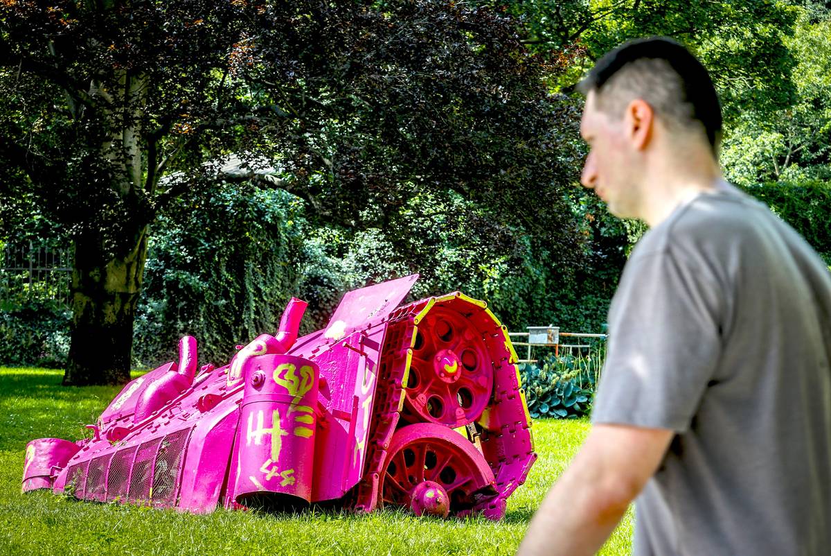 TORZO TANKU|2018. Na náměstí Kinských je umístěné torzo tanku, které sem David Černý instaloval k padesátiletému výročí této události jako vzpomínku na období, kdy Sověti okupovali Českou zemi.