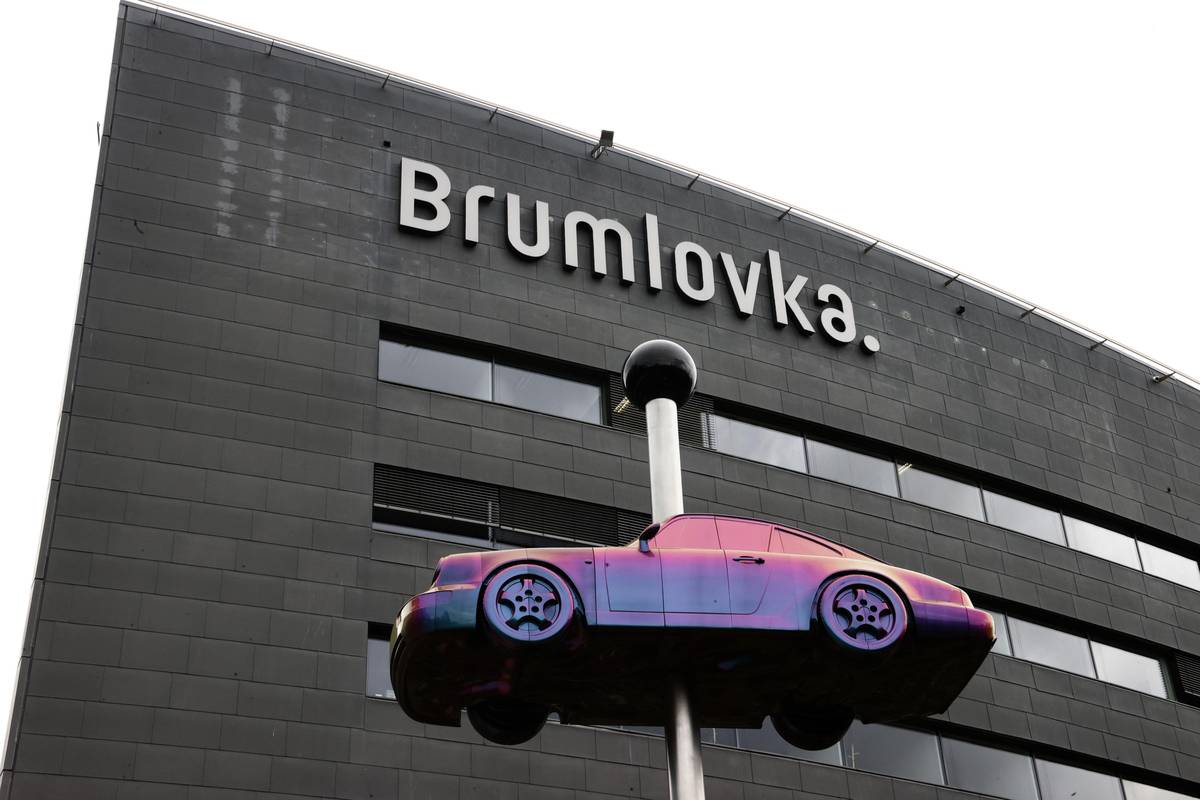 Brouk. Brumlovka. Sedmnáct metrů vysoká a osm metrů široká pohyblivá socha Brouk představuje automobil Porsche 911 zapíchnutý na špendlíku, což má připomínat brouka v entomologické sbírce. Socha byla odhalena 1. dubna 2020. Podle autora upozorňuje na přílišnou společenskou náklonost automobilismu.