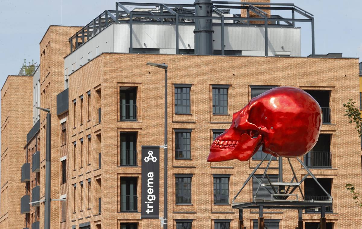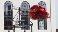 U Musolea Davida Černého teď nově rotuje červená lebka. Nádražní 2, Praha 5-Smíchov