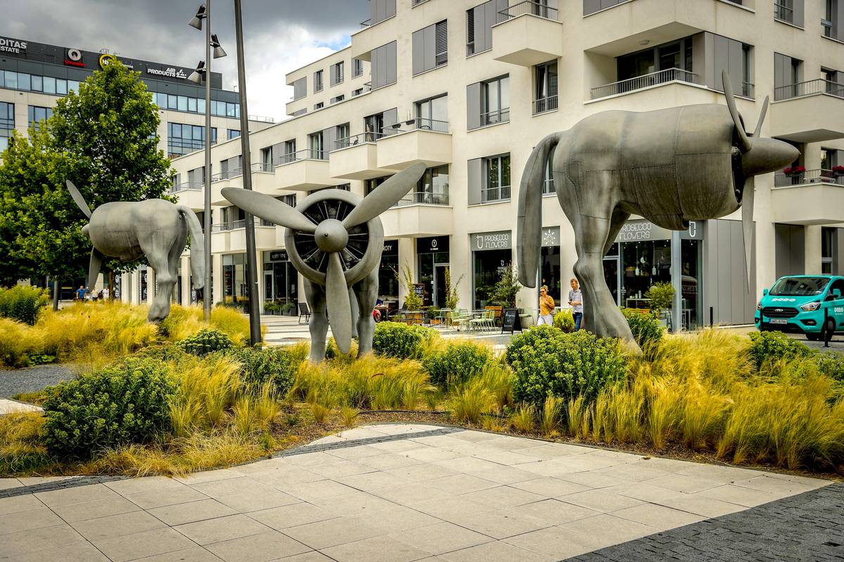 Na snímku Napůl koně a napůl motory. Tyto sochy nejsou v rezidenci Waltrovka v Praze 5 umístěné zcela náhodně. Právě zde byly totiž v minulosti vyráběny motory Walter Pegas.
