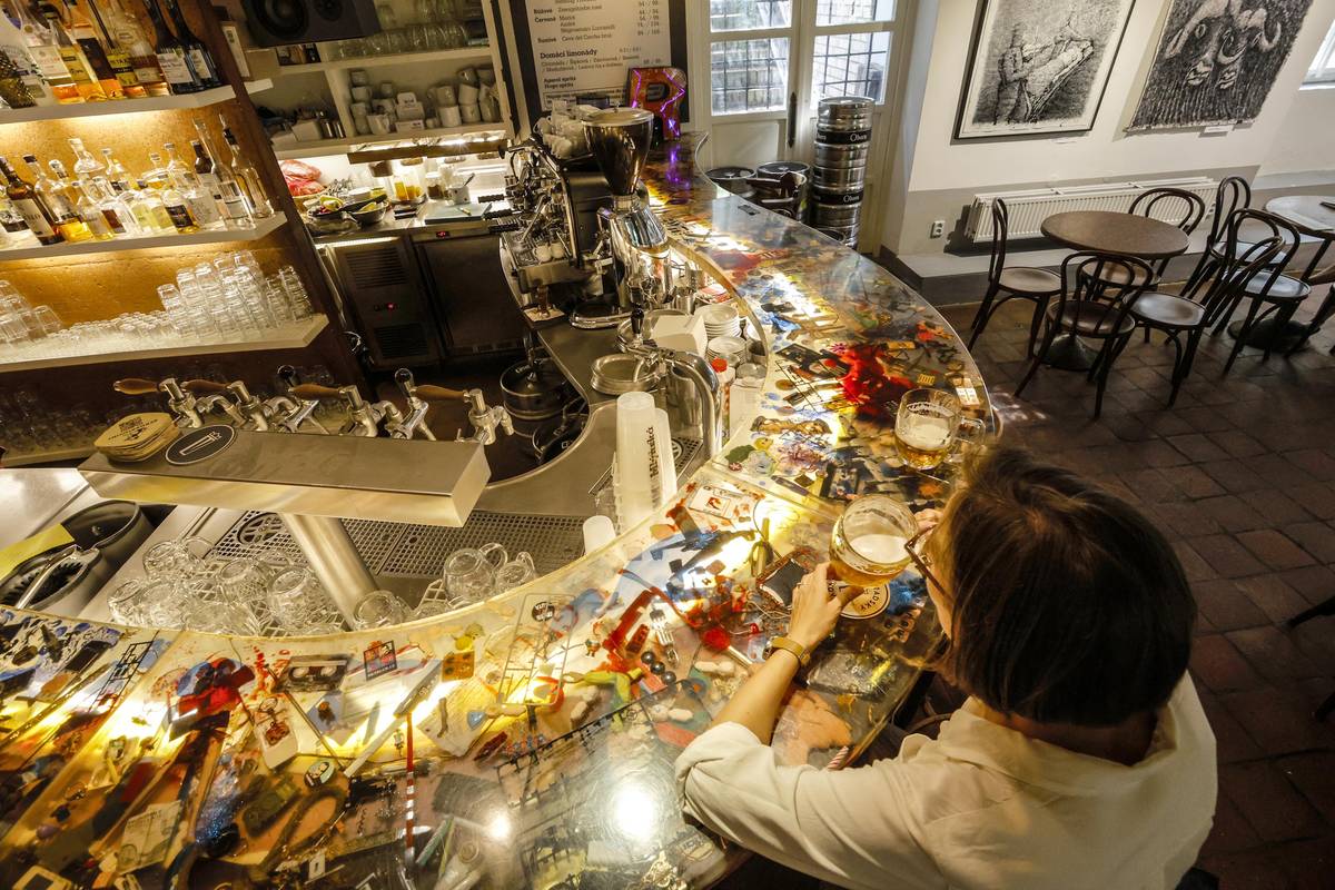 Barový pult v Kavárně Mlynská od Davida Černého se nachází na pražské Kampě. Do pultu je zalitá identifikační karta umělce z dob pobývání v New Yorku.
