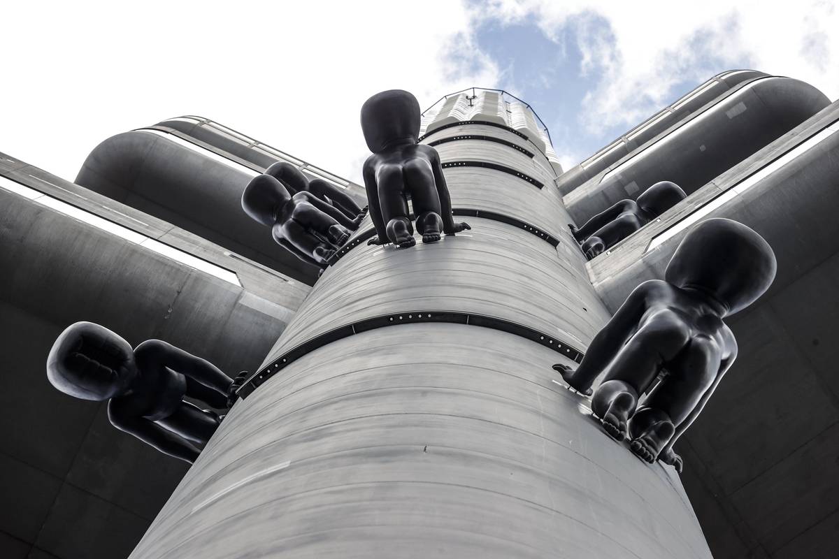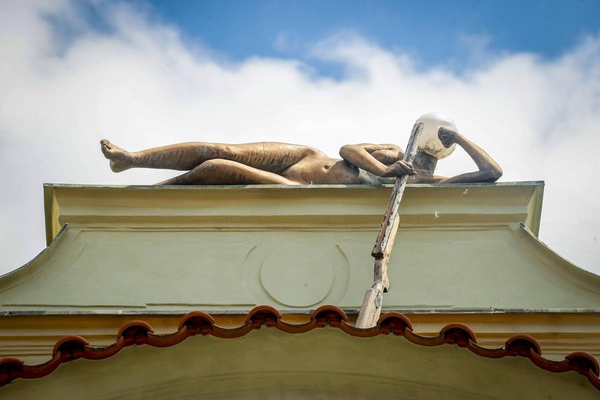 Sochy a plastiky Davida Černého v Praze. Na snímku obří socha nahé ženy Lilith, jež byla v říjnu 2022 nainstalována na nájemní dům Fragment investiční skupiny Trigema. Praha-Karlín