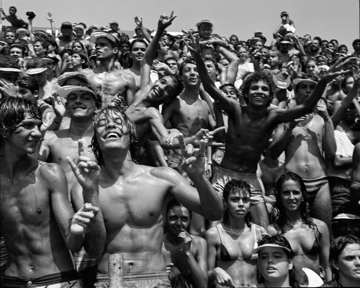 Davy na beachvolejbalovém zápase Brazílie proti USA. Ipanema, Brazílie, 1986.