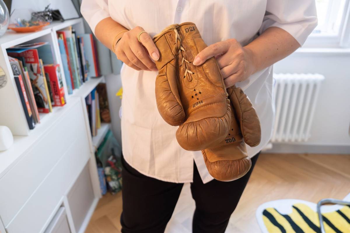 Má tu také staré kožené boxerské rukavice a medicimbaly.