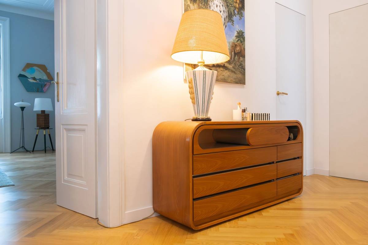 Tady u té italské skříňky je dobře vidět, jak všechno nové splývá v jeden celek.