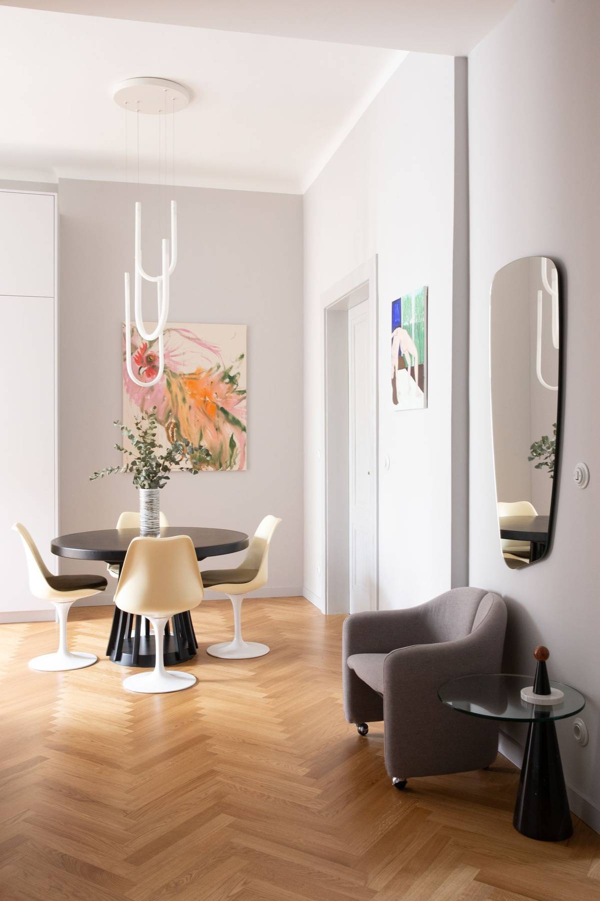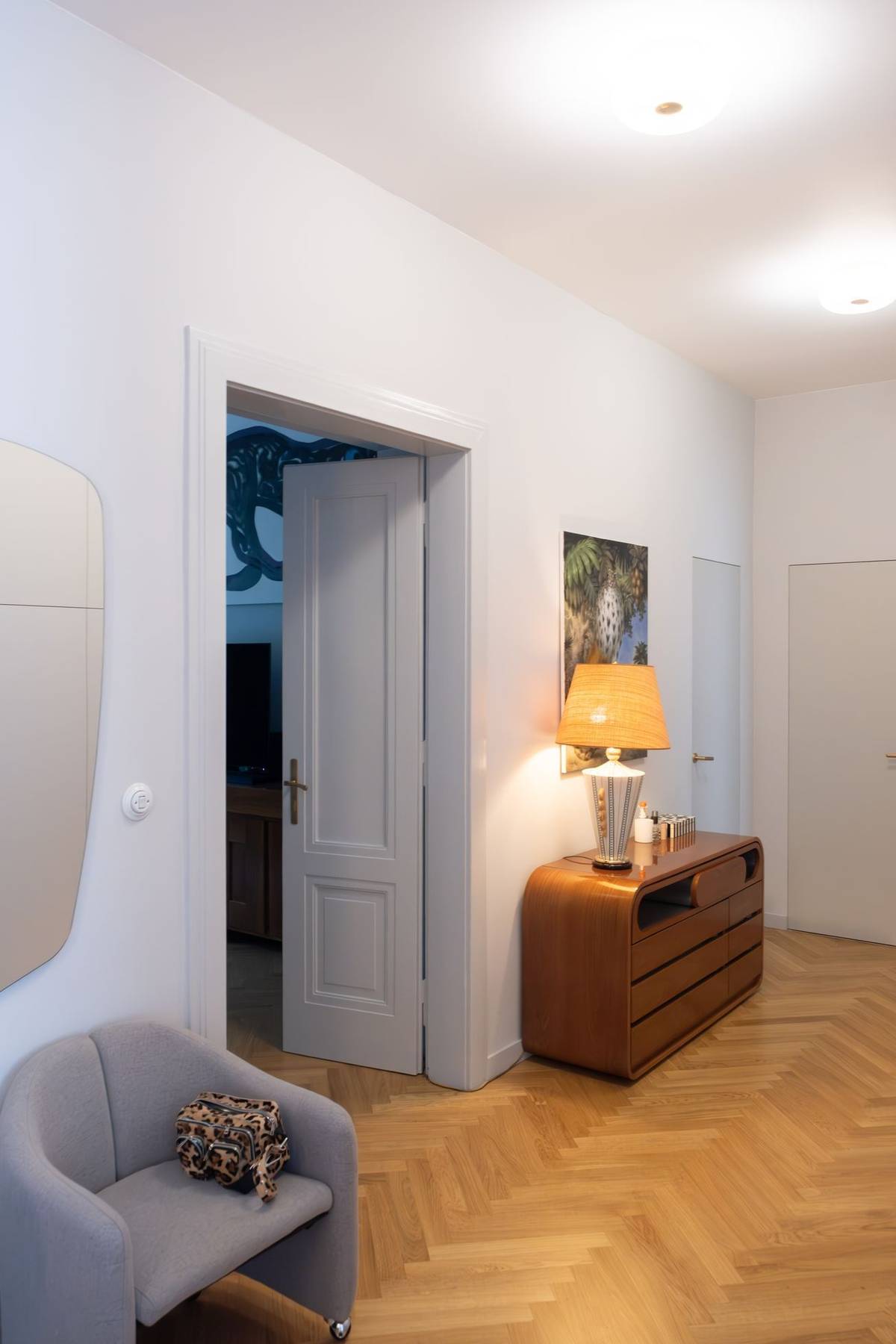 Volila jsem jemně šedou barvu, která působí neutrálně a nechává vyniknout solitéry starého nábytku.